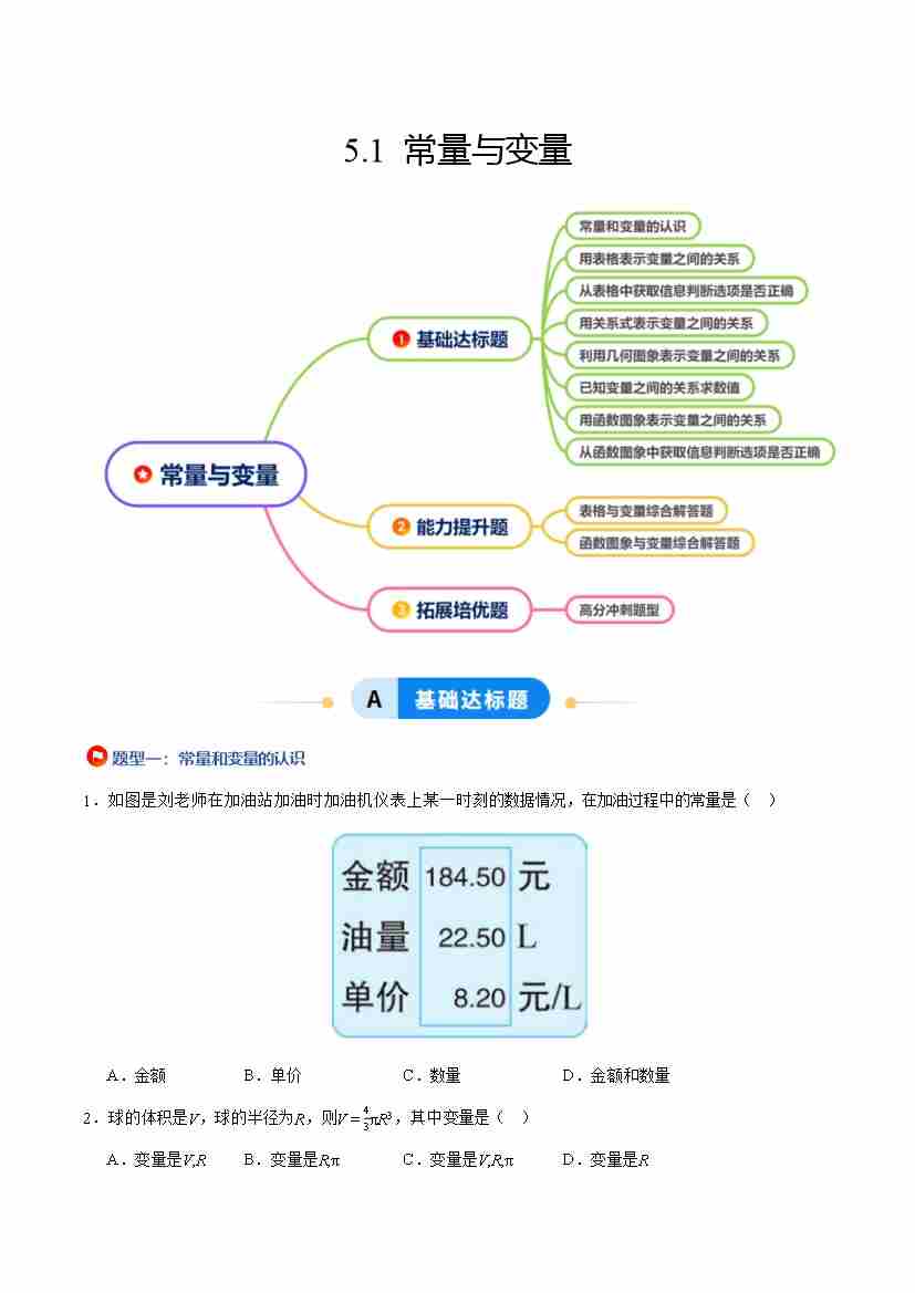 5.1 常量与变量(8大基础题型2大巩固提升)(题型专练)(原卷版)