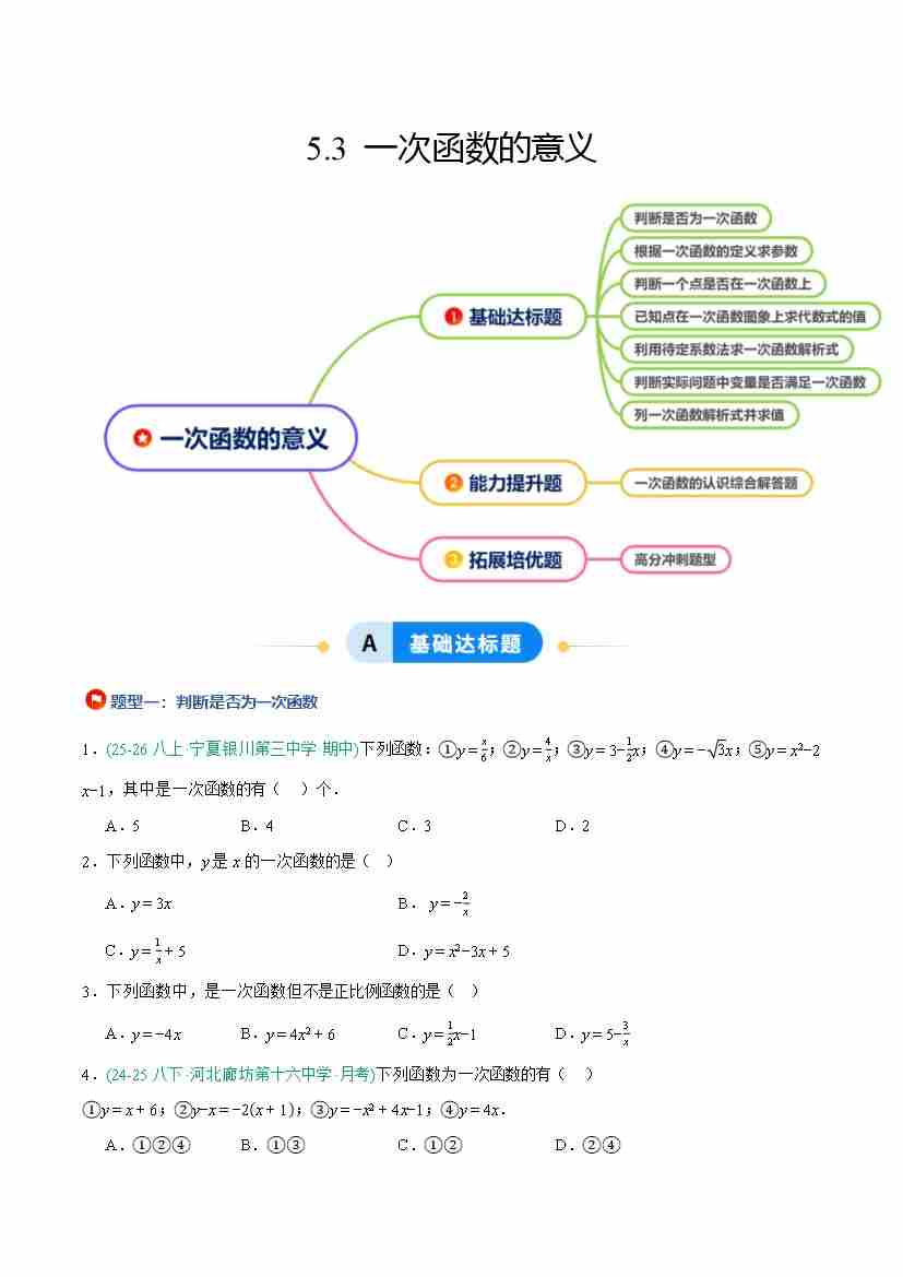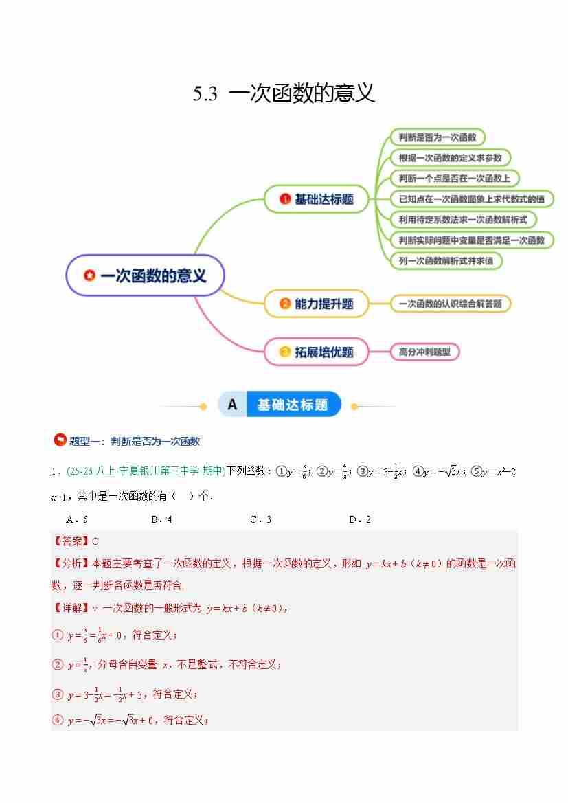 5.3 一次函数的意义(7大基础题型1大巩固提升)(题型专练)(原卷版)