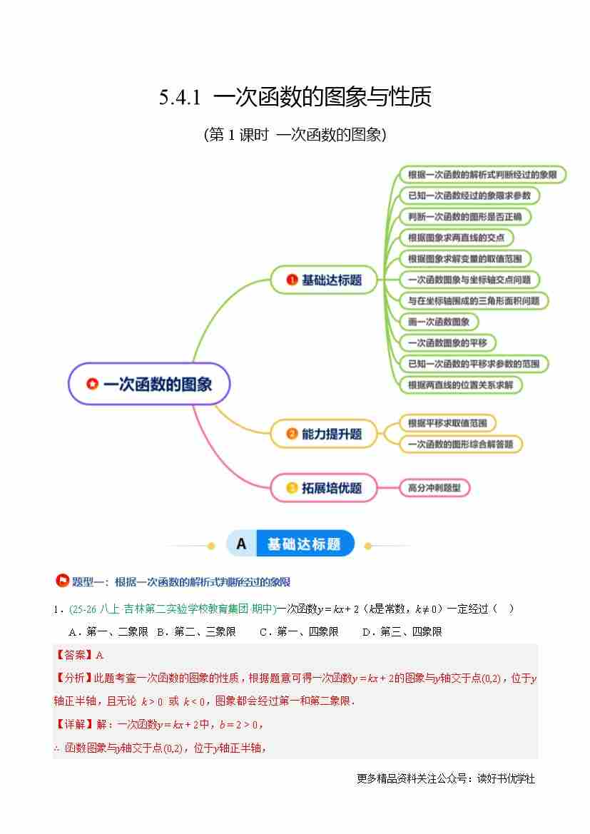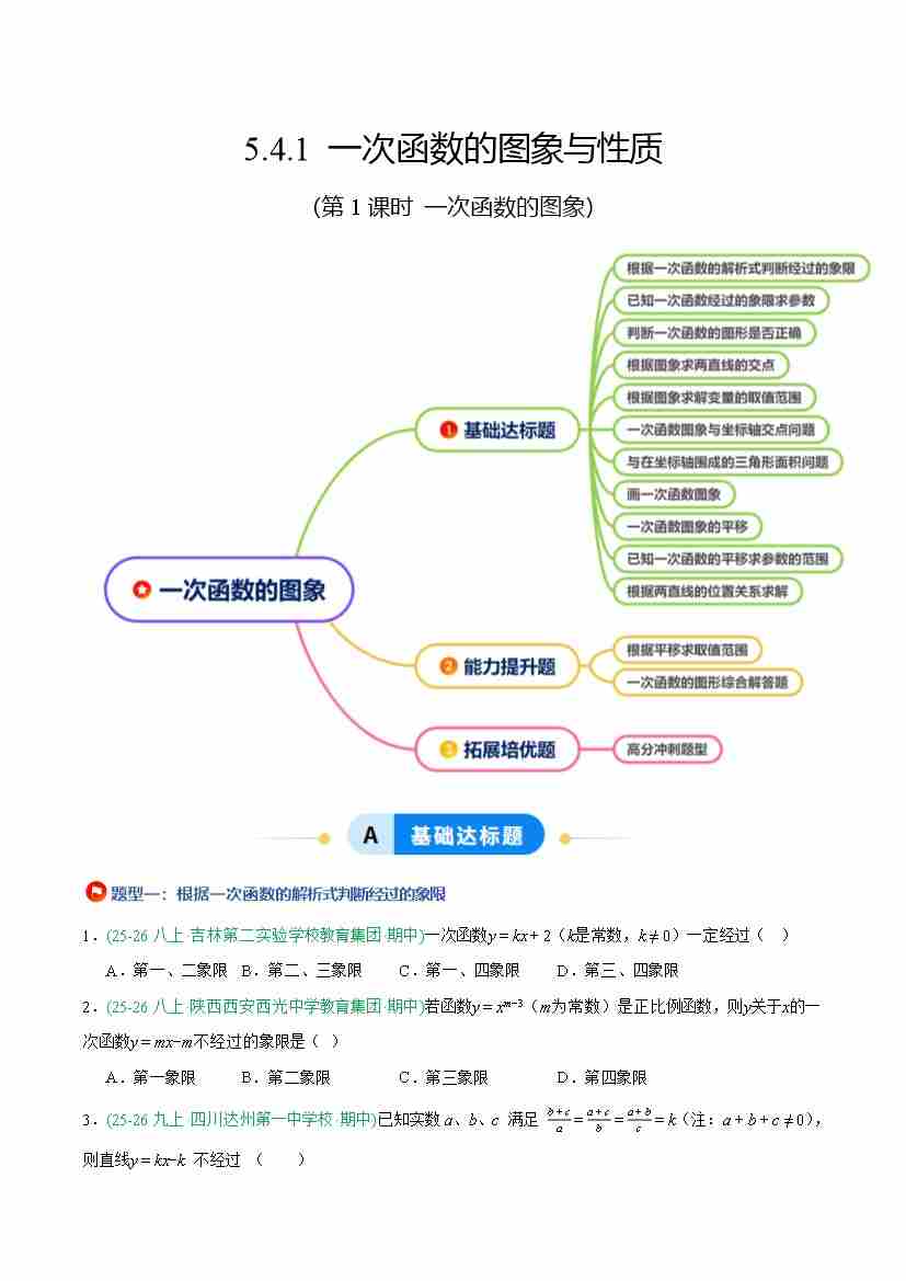 5.4.1 一次函数的图象与性质(第1课时 一次函数的图象)(11大基础题型2大巩固提升)(题型专练)(原卷版)