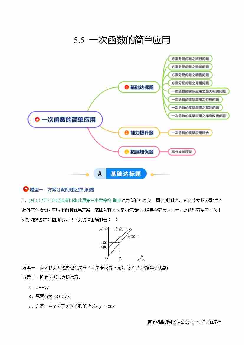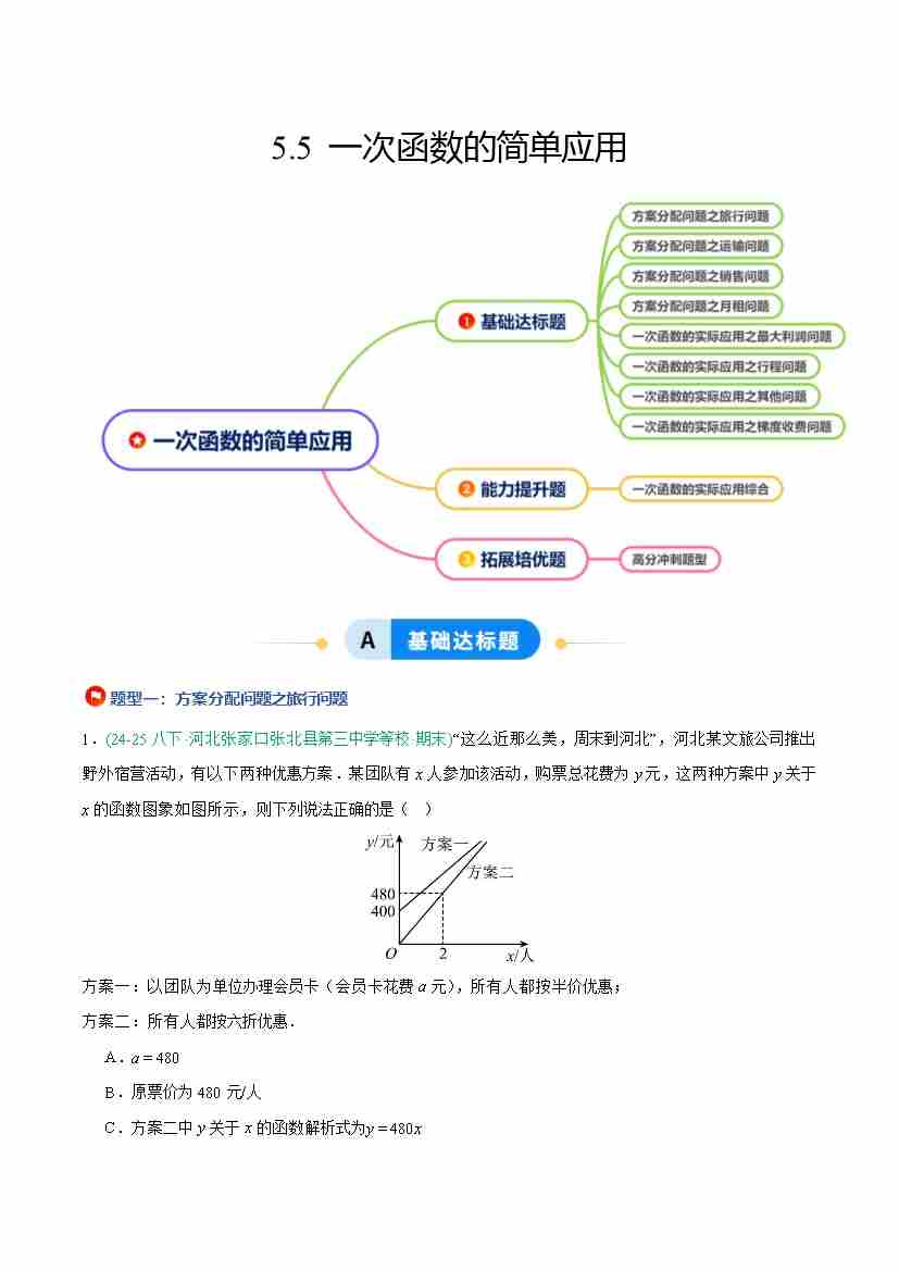 5.5 一次函数的简单应用(8大基础题型1大巩固提升)(题型专练)(原卷版)