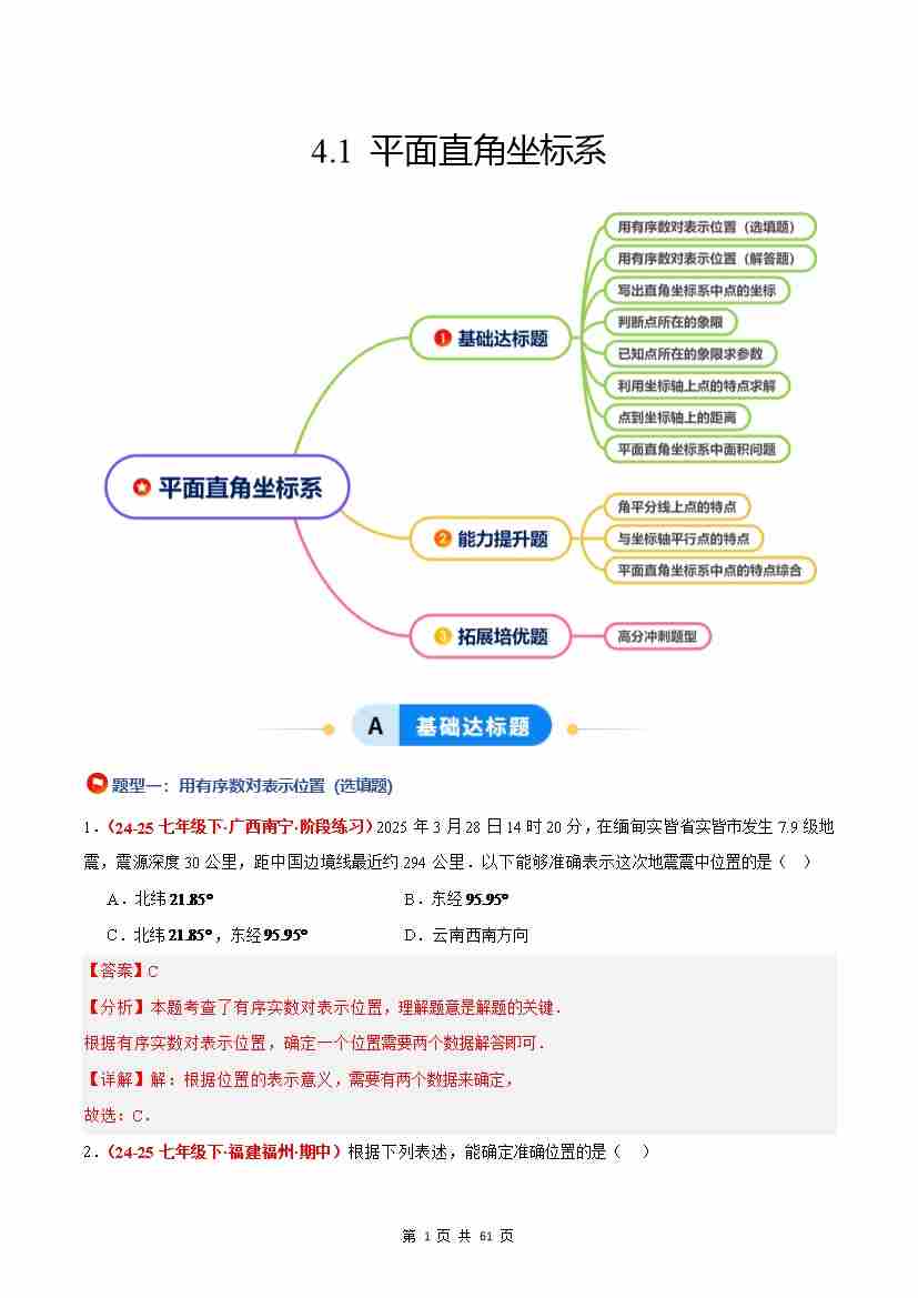 4.1 平面直角坐标系(8大基础题型3大巩固提升)(题型专练)(原卷版)