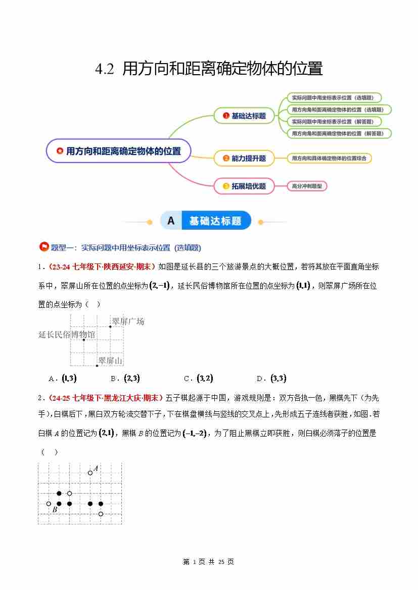 4.2 用方向和距离确定物体的位置(4大基础题型1大巩固提升)(题型专练)(原卷版)