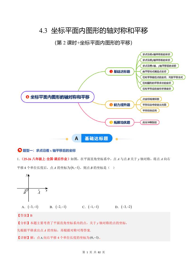 4.3 坐标平面内图形的轴对称和平移(第2课时平移)(7大基础题型3大巩固提升)(题型专练)(解析版)