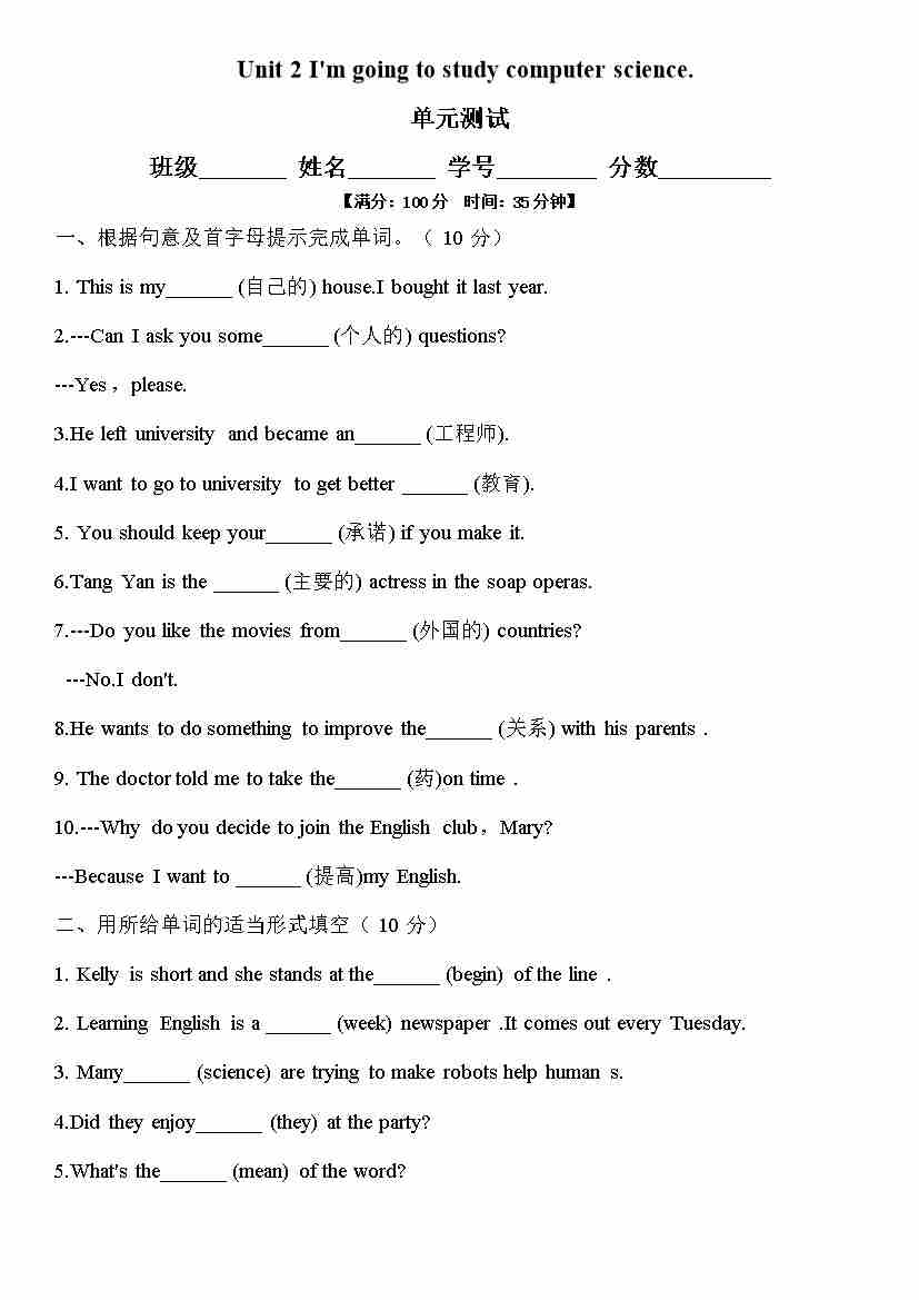 2.10 Unit 2 I'm going to study computer science 单元测试(原卷版)