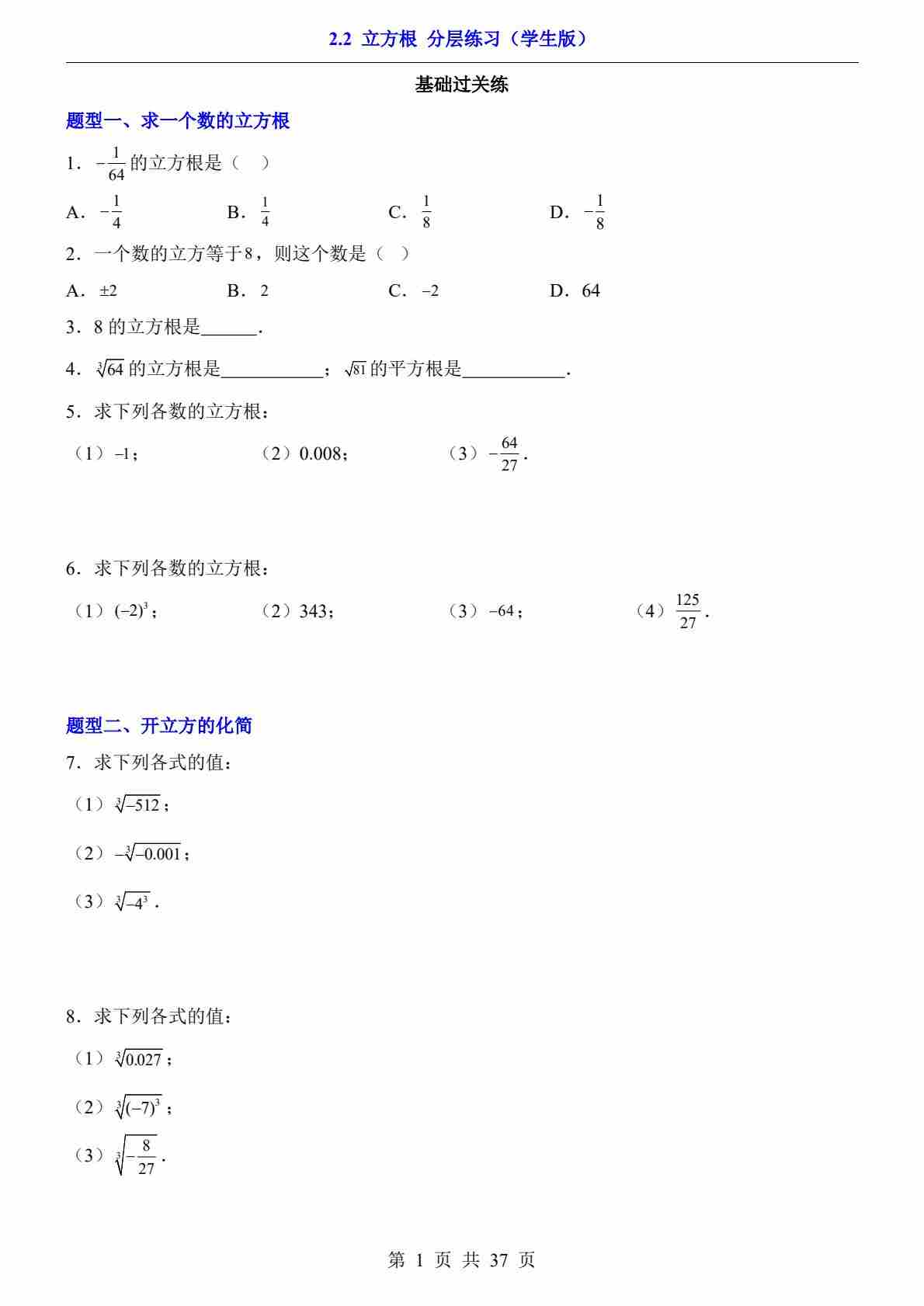 2.2 立方根(分层练习)