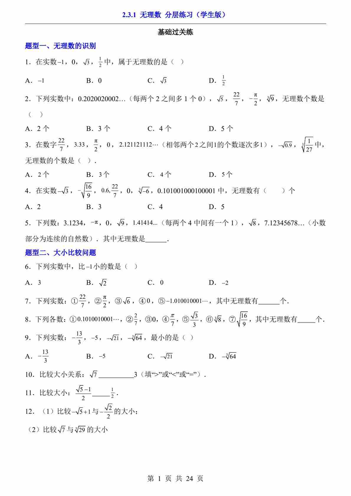 2.3.1 无理数(分层练习)