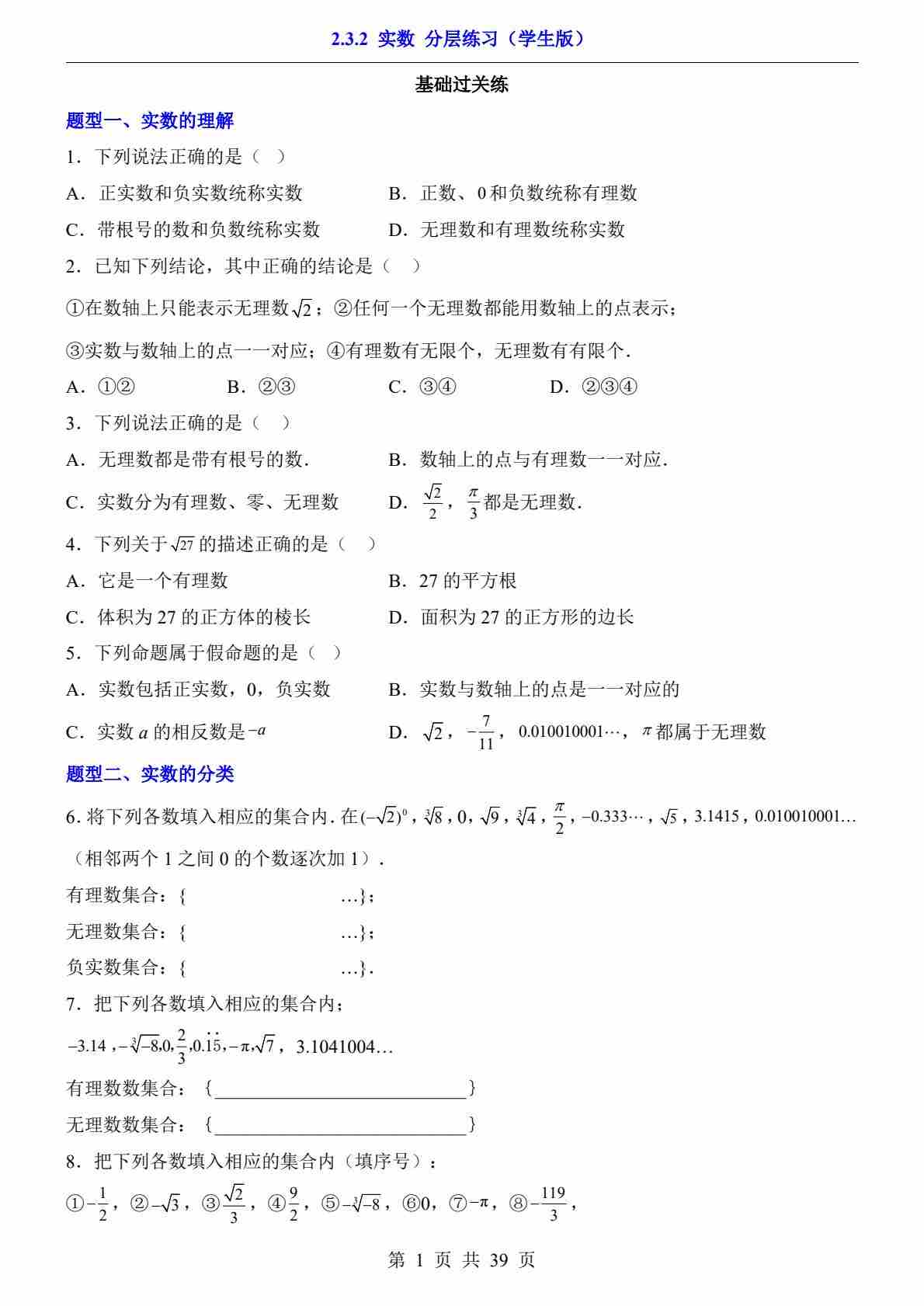 2.3.2 实数(分层练习)