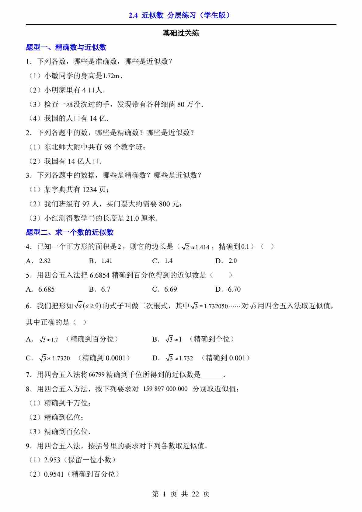 2.4 近似数(分层练习)
