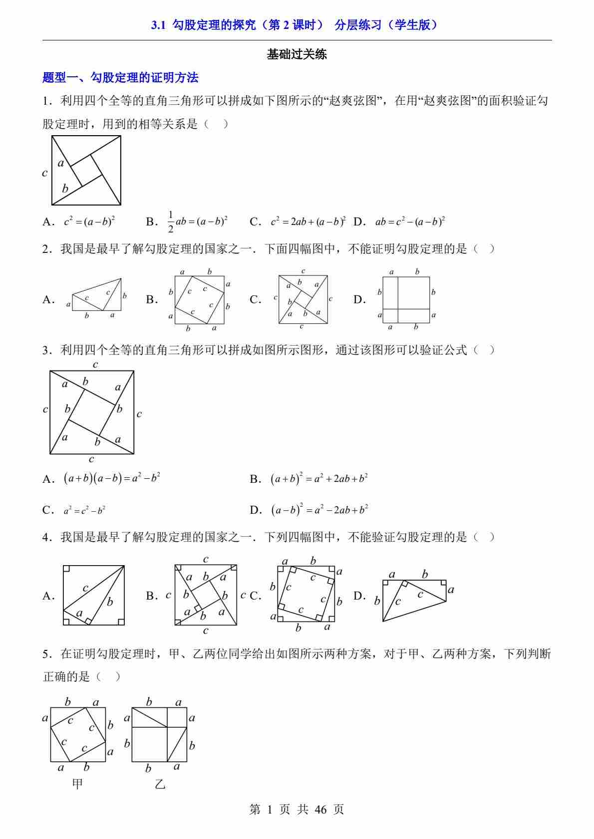3.1 勾股定理的探究 第2课时(分层练习)