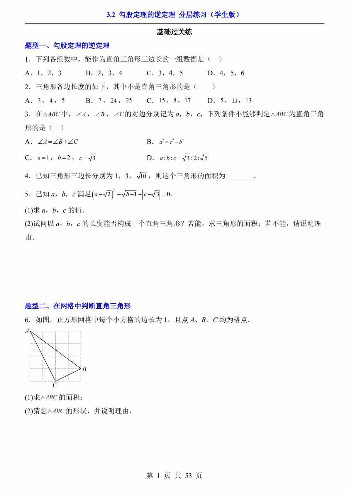 3.2 勾股定理的逆定理(分层练习)