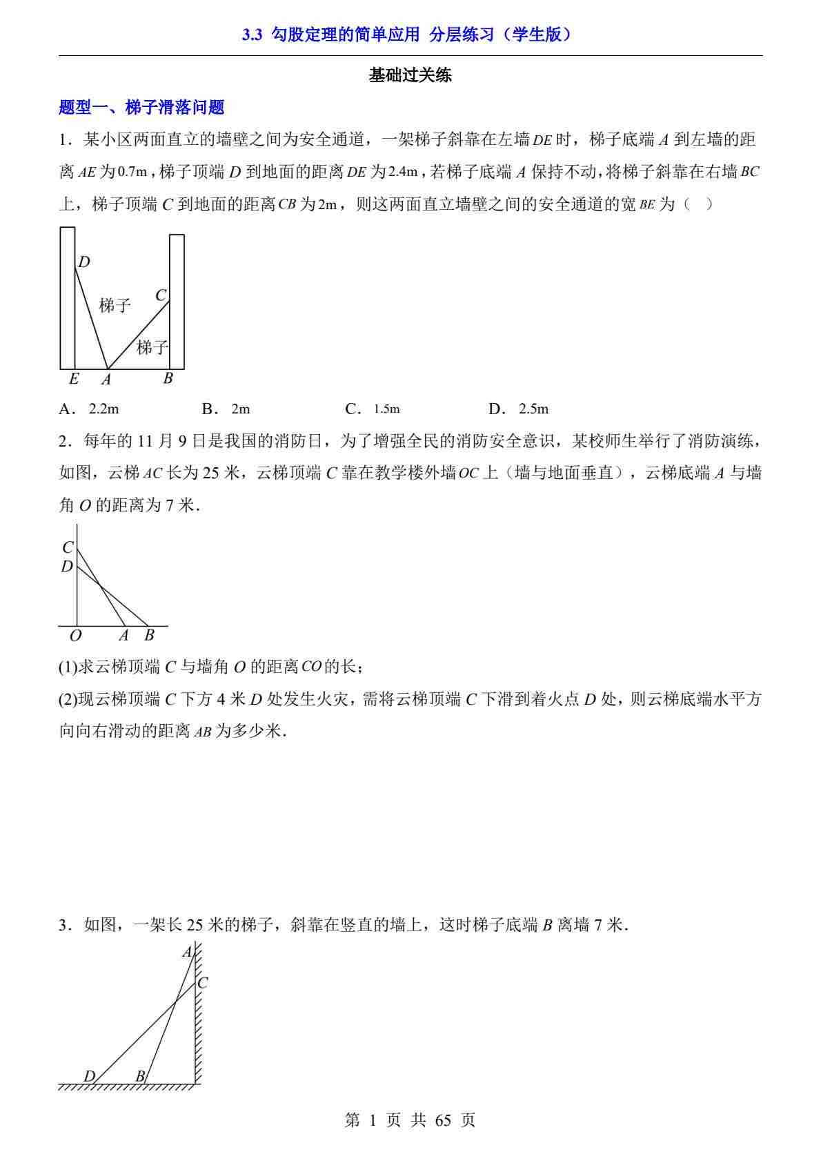 3.3 勾股定理的简单应用(分层练习)