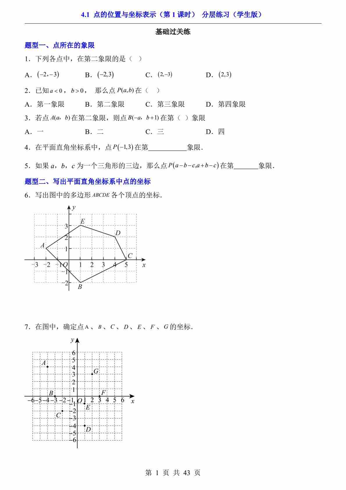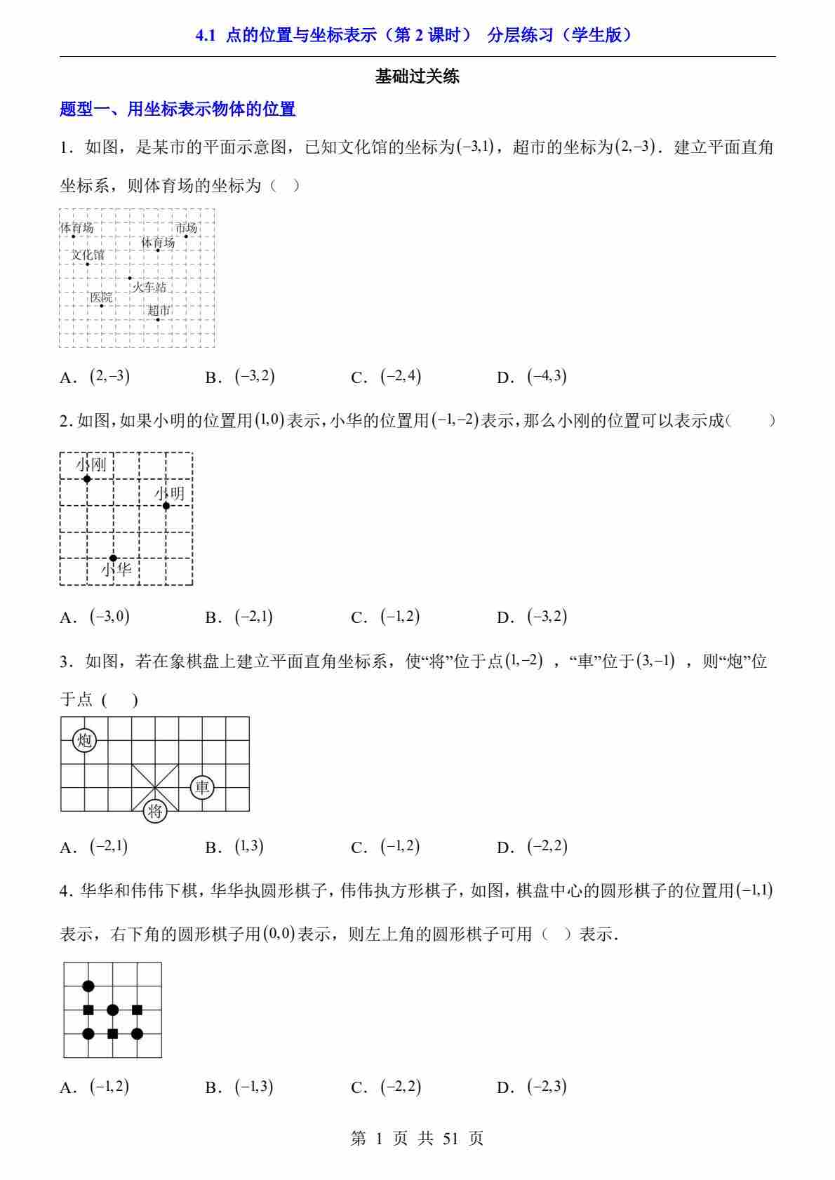 4.1 点的位置与坐标表示 第1课时(分层练习)