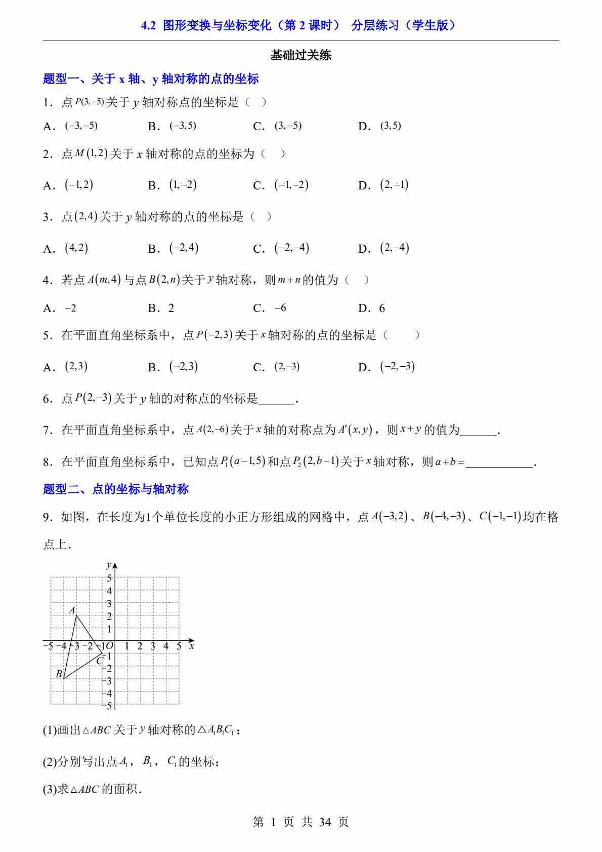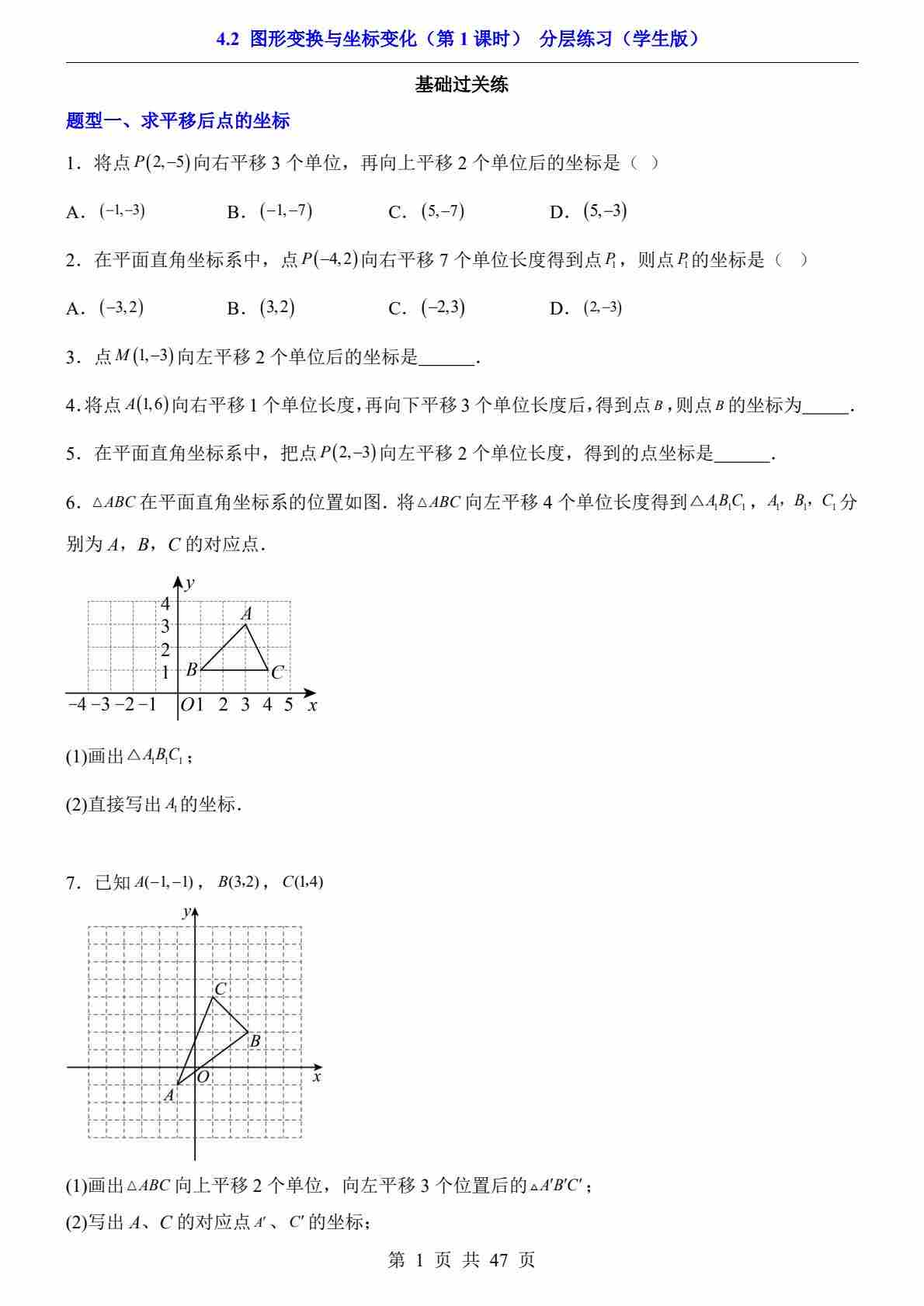 4.2 图形变换与坐标变化 第1课时(分层练习)