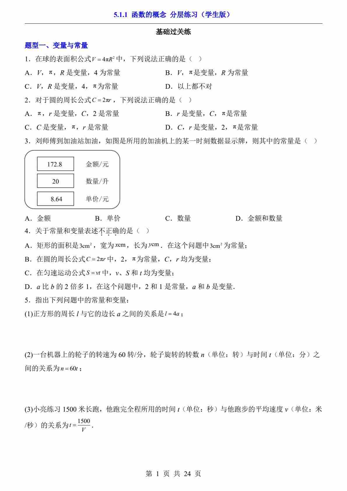 5.1.1 函数的概念(分层练习)