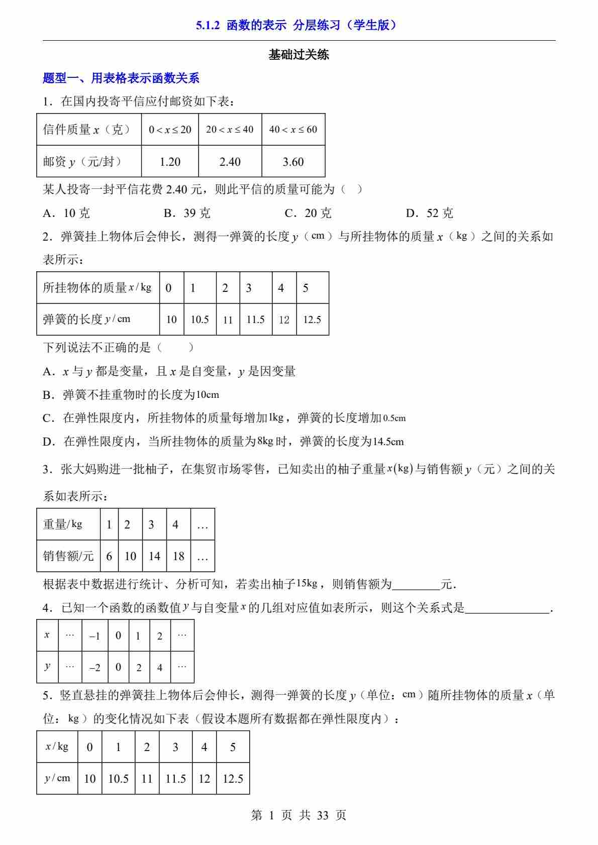 5.1.2 函数的表示(分层练习)