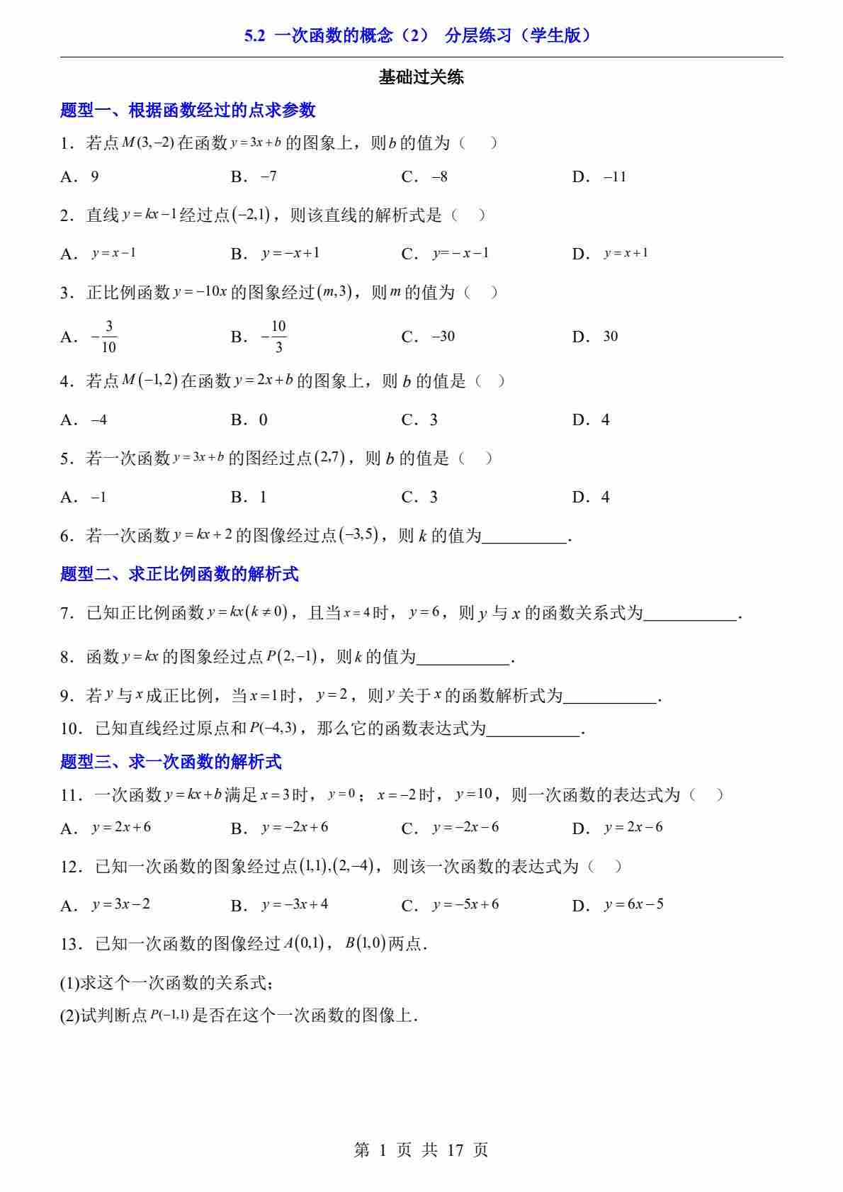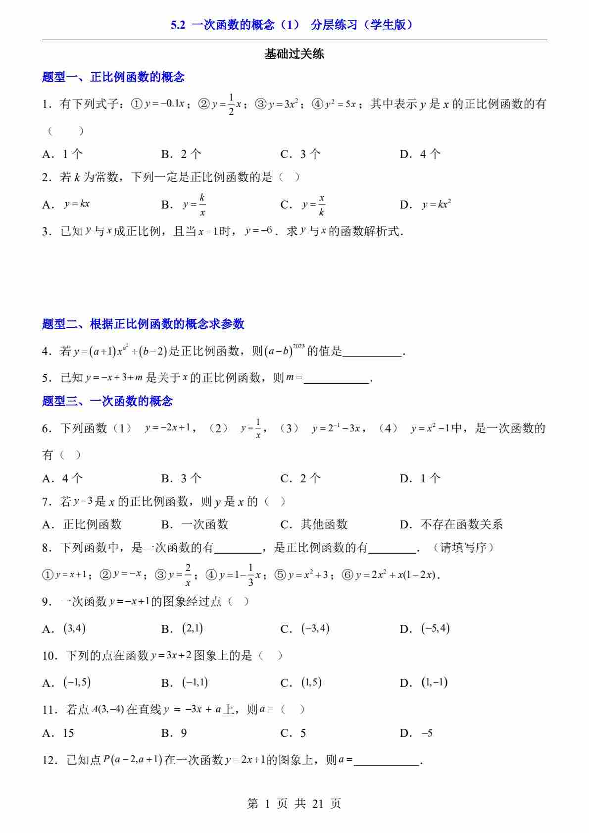 5.2 一次函数的概念(2)(分层练习)