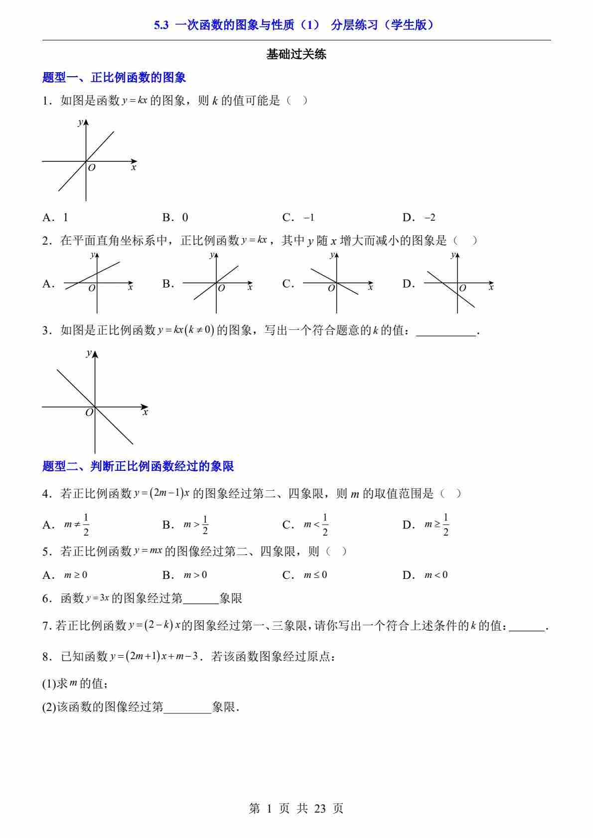 5.3 一次函数的图象与性质(1)(分层练习)