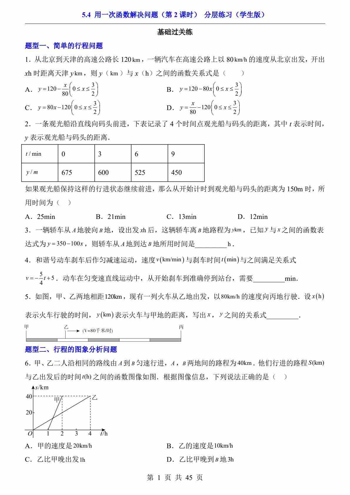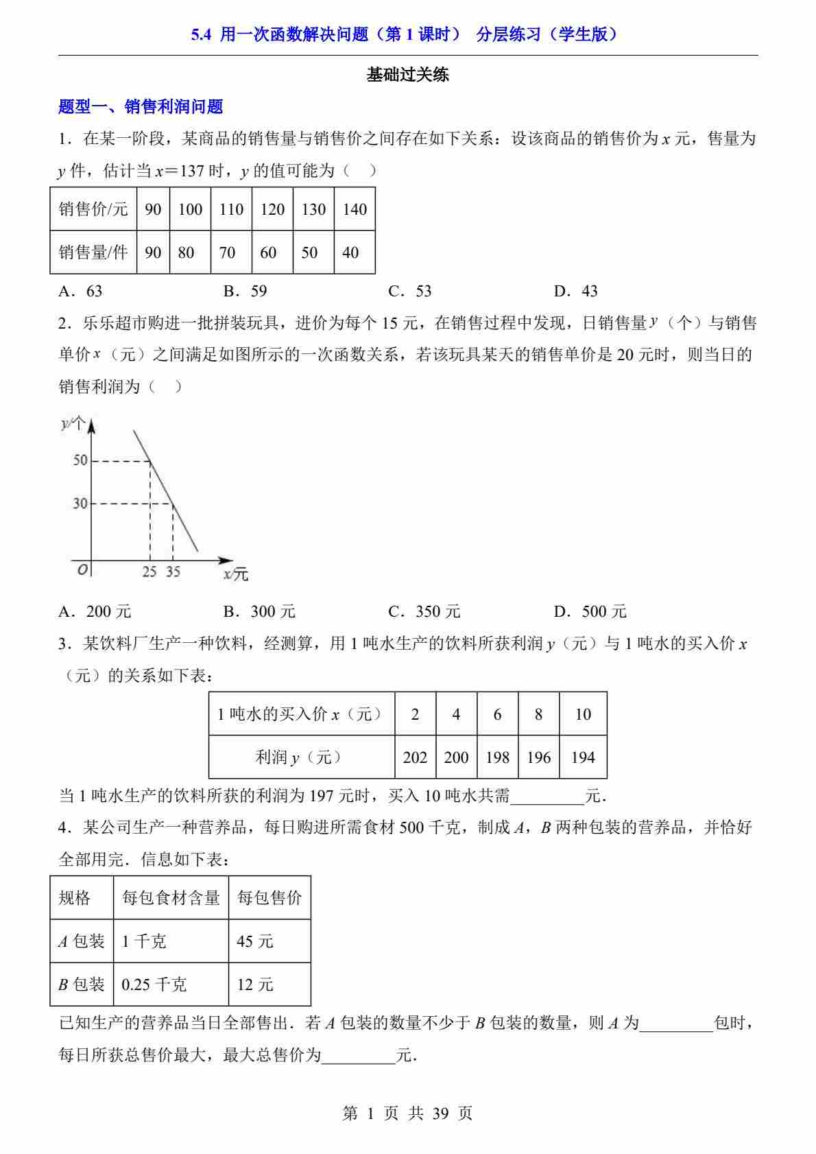 5.4 用一次函数解决问题(第1课时)(分层练习)