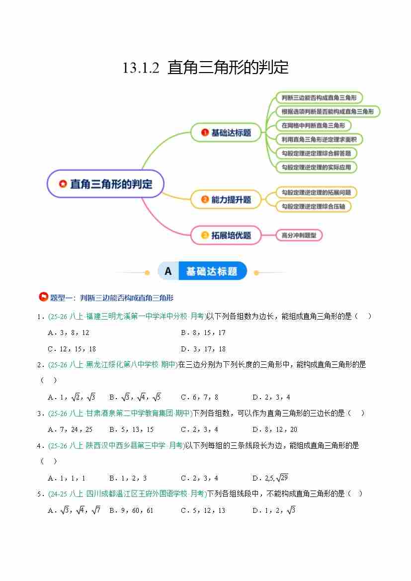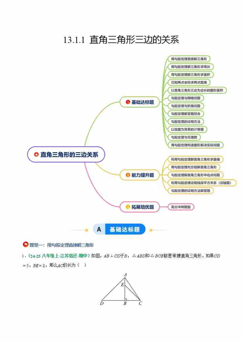 13.1.1 直角三角形三边的关系(12大基础题型5大巩固提升)(题型专练)(原卷版)