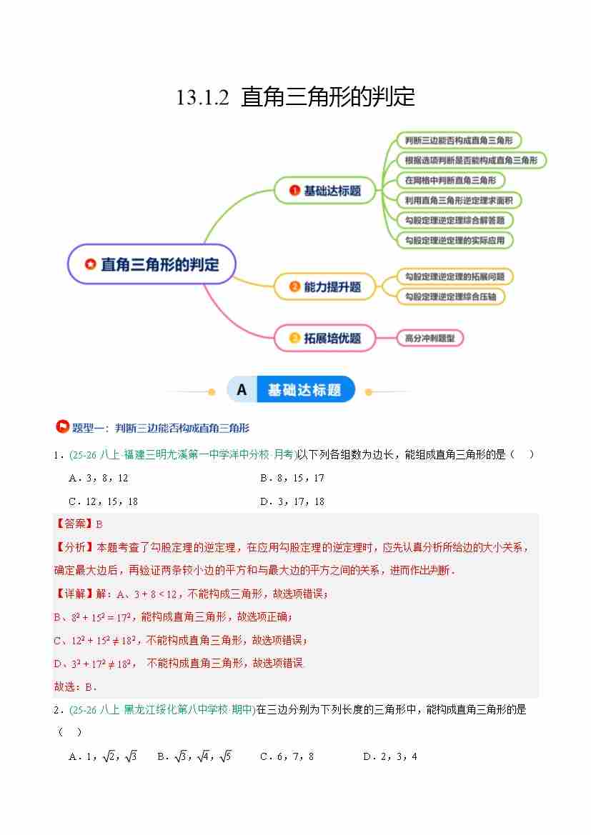 13.1.2 直角三角形的判定(6大基础题型2大巩固提升)(题型专练) (解析版)