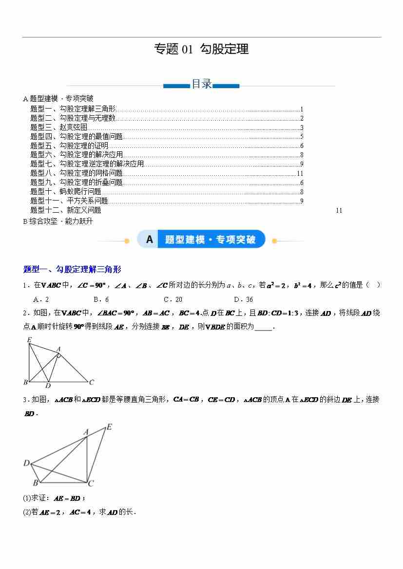 【八上华师数学】专题06 勾股定理(专项训练)数学华东师大版2024八年级上册(原卷版)