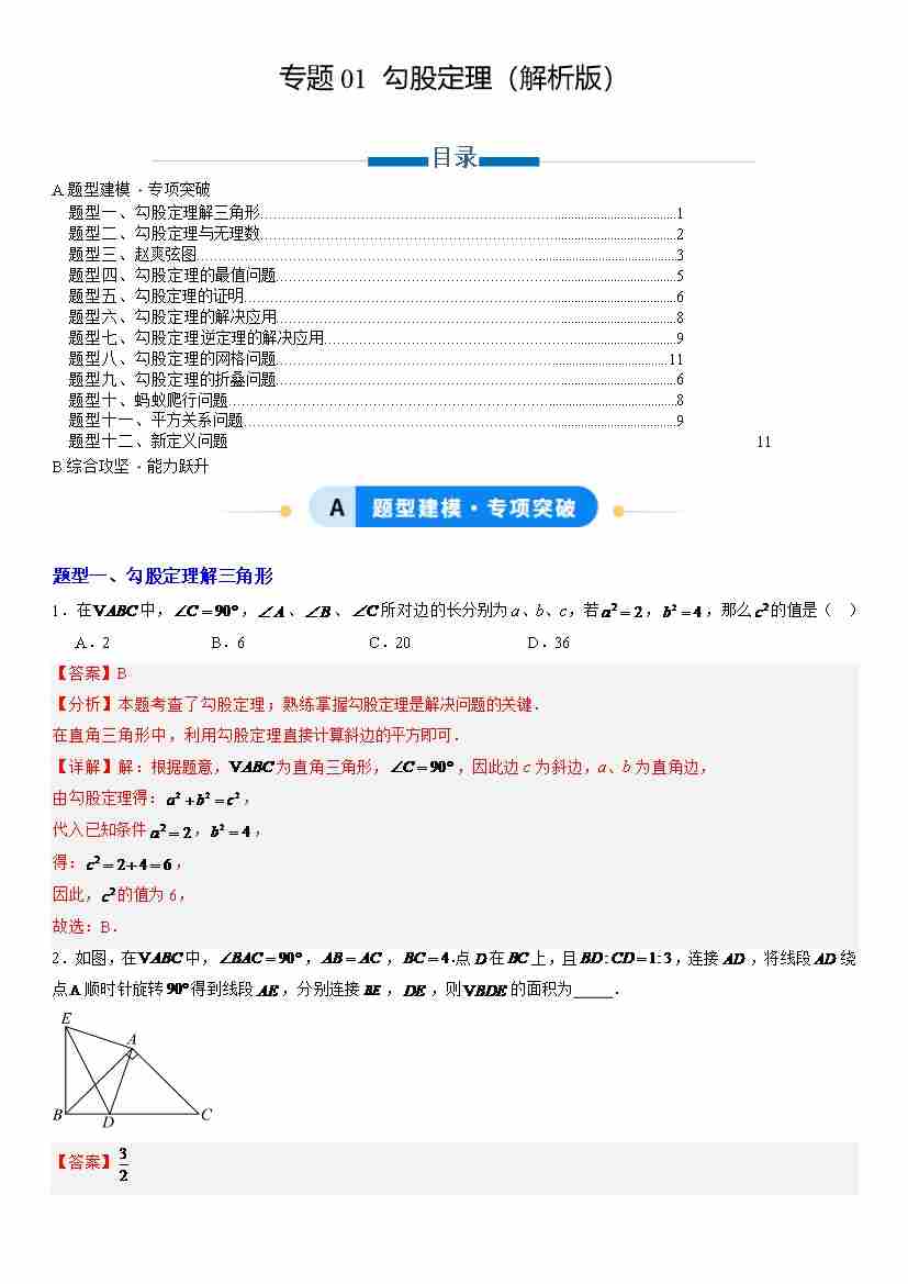 【八上华师数学】专题06 勾股定理(专项训练)数学华东师大版2024八年级上册(解析版)