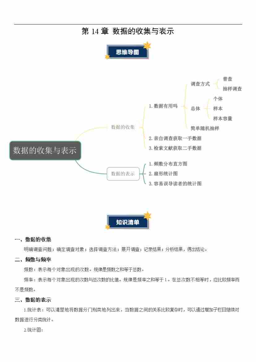 【八上华师数学】第14章 数据的收集与表示(知识清单)数学华东师大版2024八年级上册(原卷版)