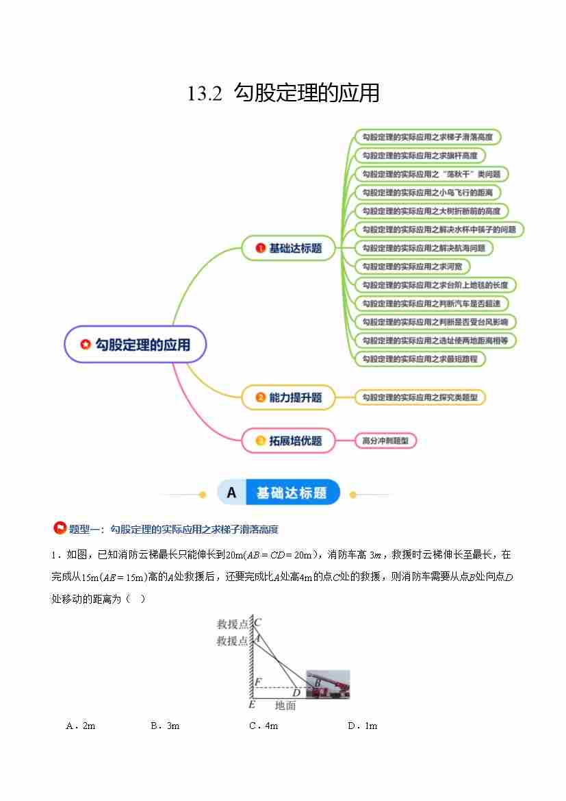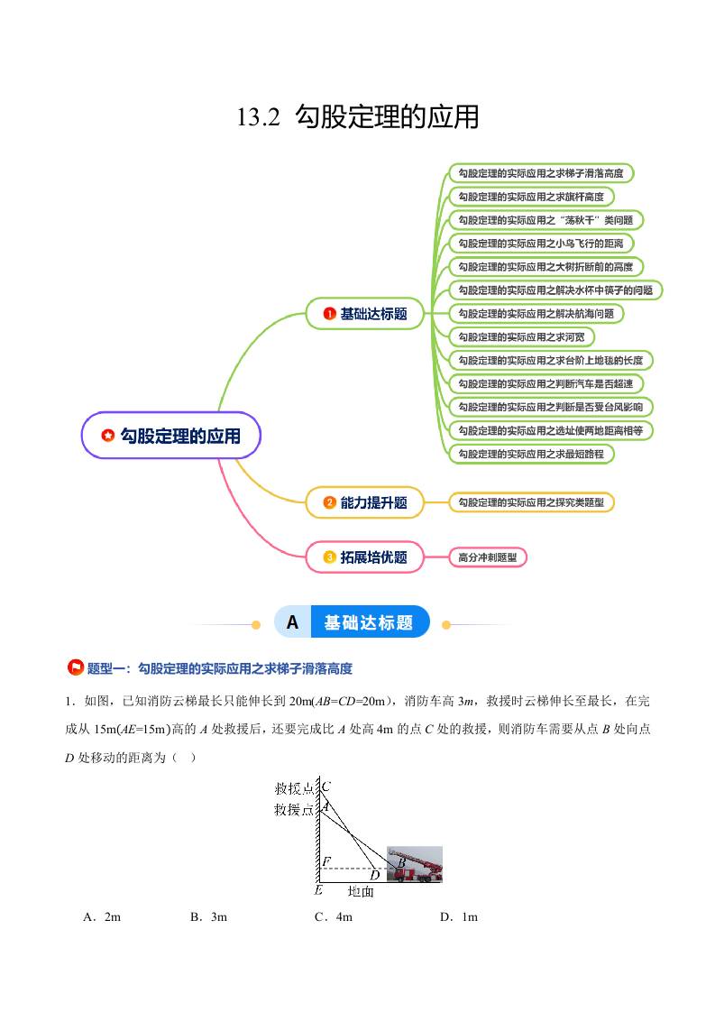 13.2 勾股定理的应用(12大基础题型1大巩固提升)(题型专练) (解析版)