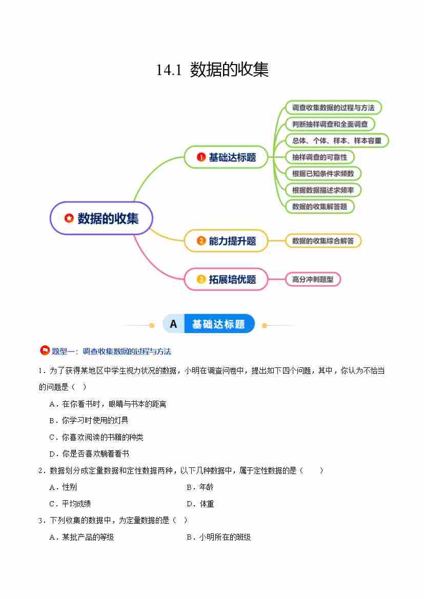 14.1 数据的收集(7大基础题型1大巩固提升)(题型专练) (原卷版)