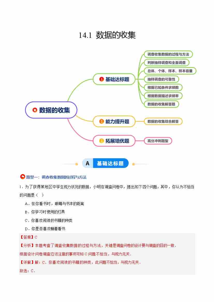 14.1 数据的收集(7大基础题型1大巩固提升)(题型专练) (解析版)