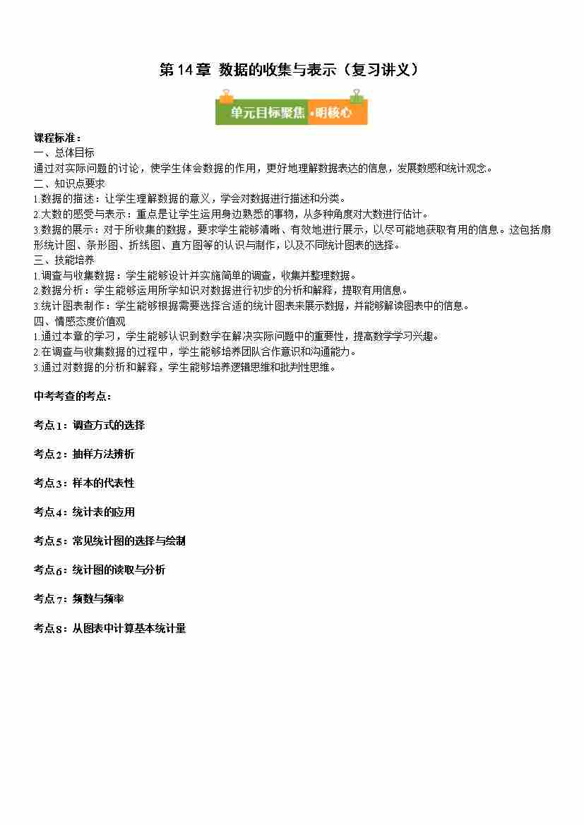 【八上华师数学】第14章 数据的收集与表示(复习讲义)数学华东师大版2024八年级上册(原卷版)