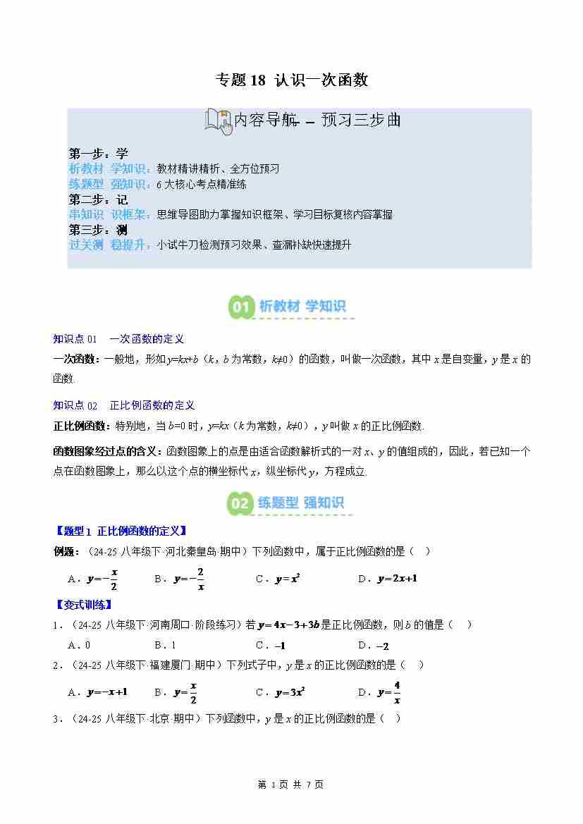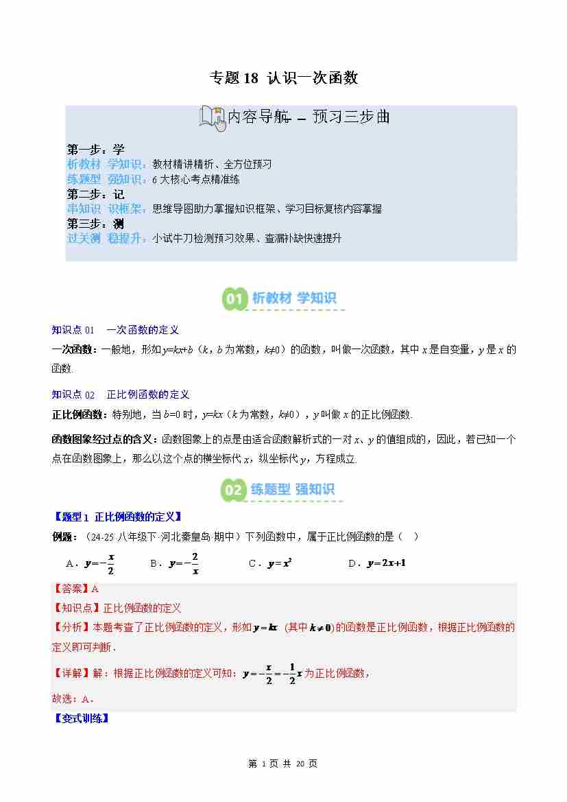 专题18: 认识一次函数(2知识点6大题型思维导图过关测)(原卷版)