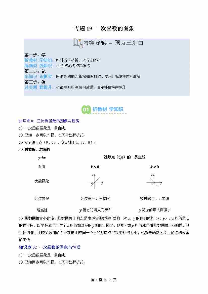 专题19: 一次函数的图象(2知识点12大题型思维导图过关测)(解析版)
