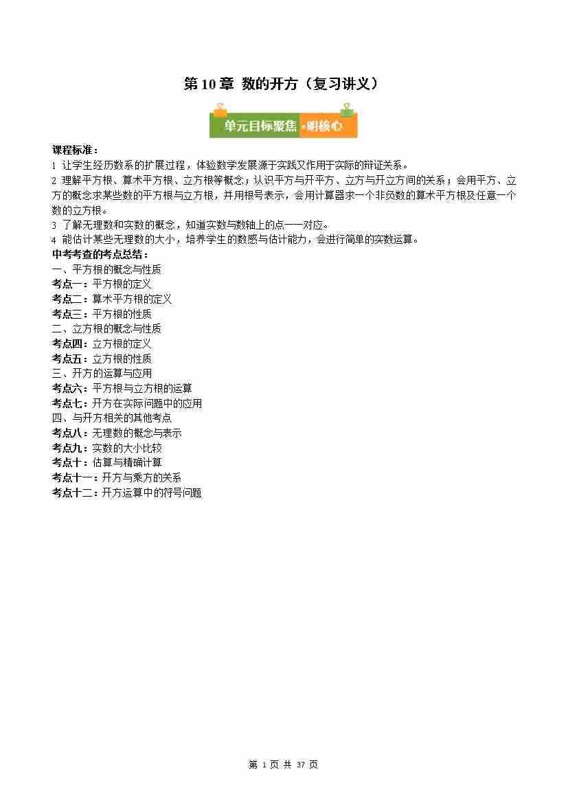 第10章 数的开方(复习讲义)数学华东师大版2024八年级上册(原卷版)