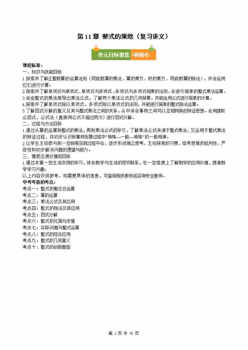第11章 整式的乘除(复习讲义)数学华东师大版2024八年级上册(原卷版)