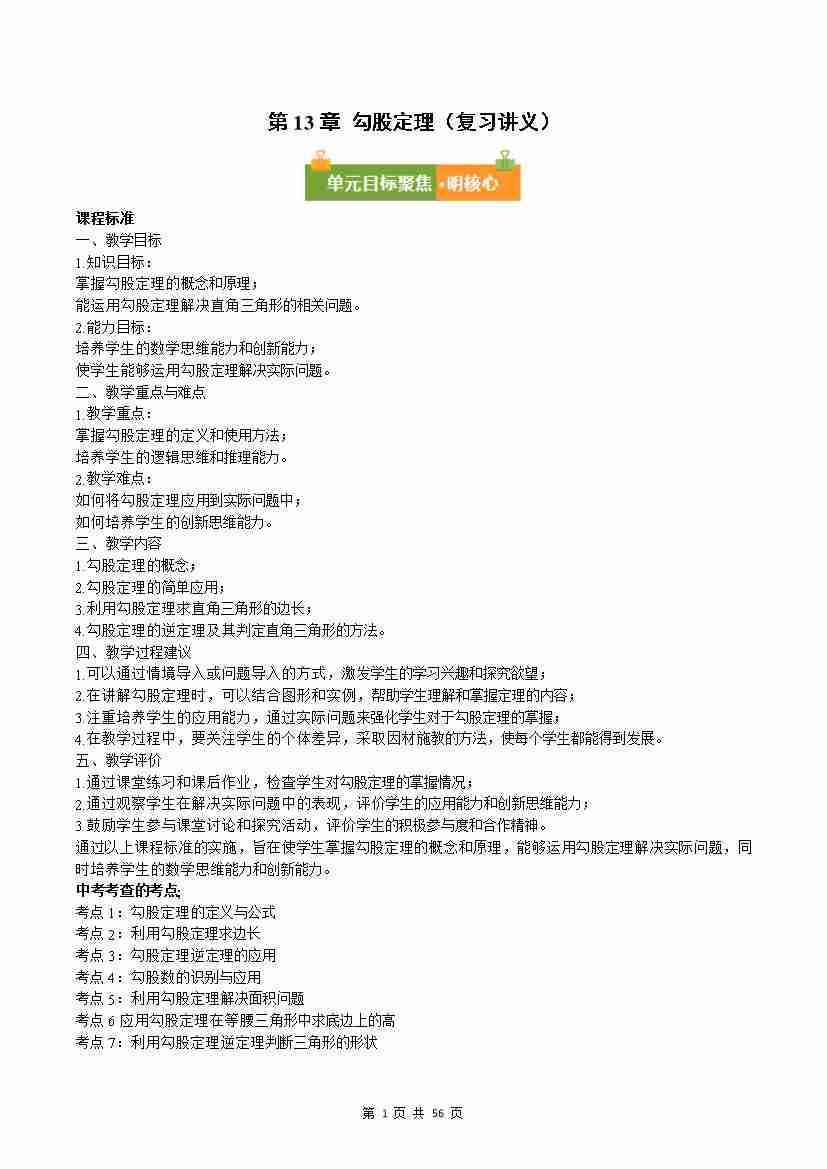 第13章 勾股定理(复习讲义)数学华东师大版2024八年级上册(原卷版)