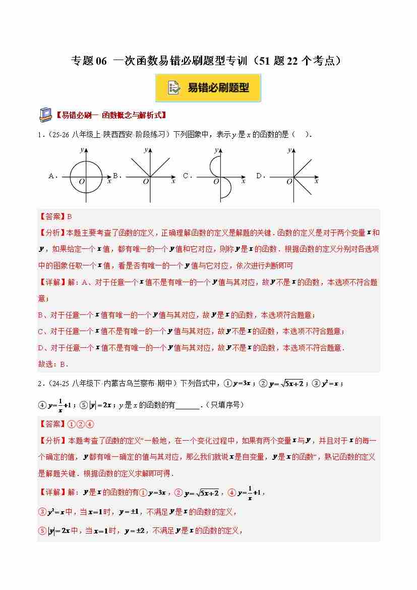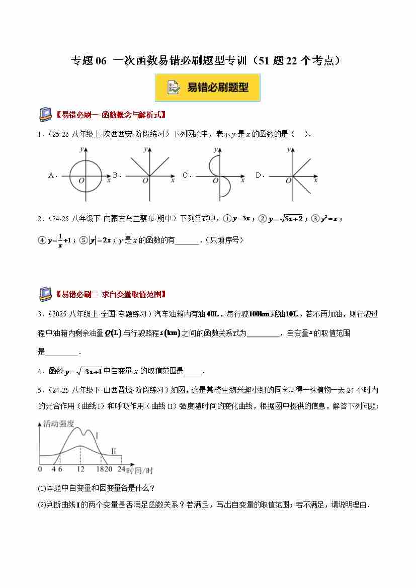 专题06 一次函数章末易错必刷题型专训(51题22个考点)(学生版)