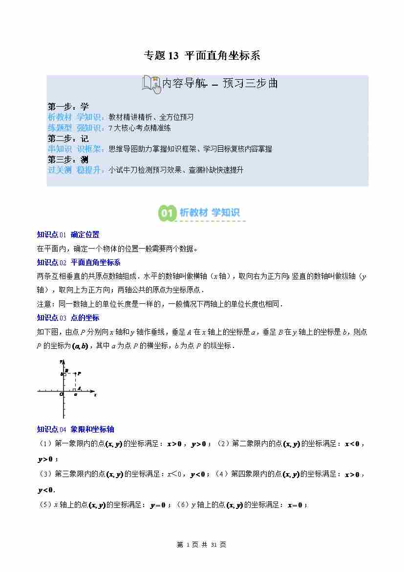 专题13: 平面直角坐标系(6知识点7大题型思维导图过关测)(原卷版)