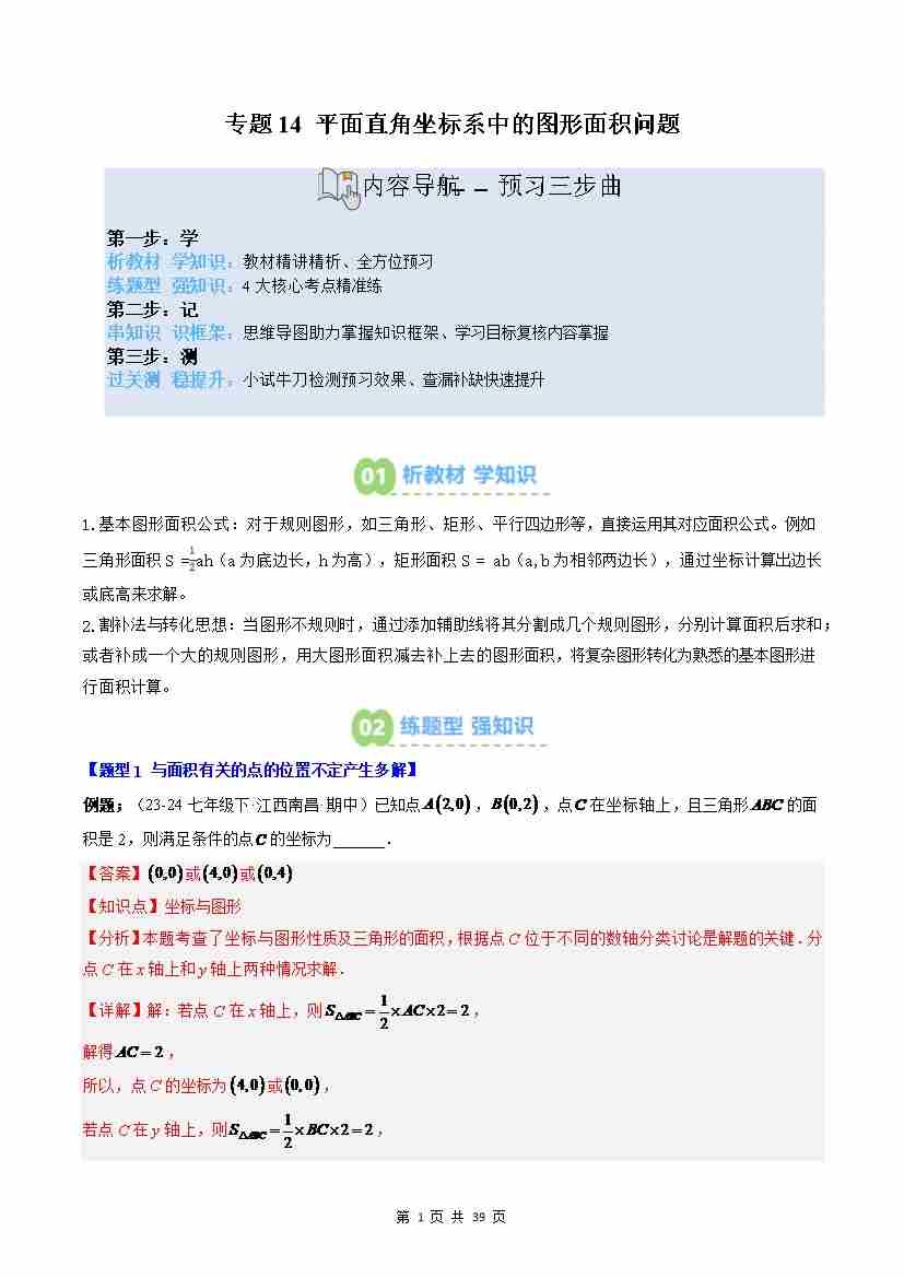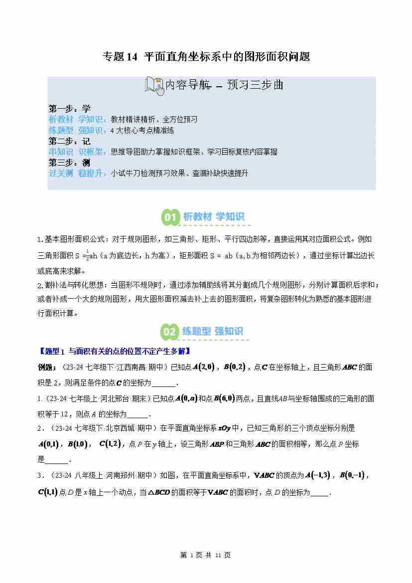 专题14: 平面直角坐标系中的图形面积问题(2知识点4大题型思维导图过关测)(原卷版)