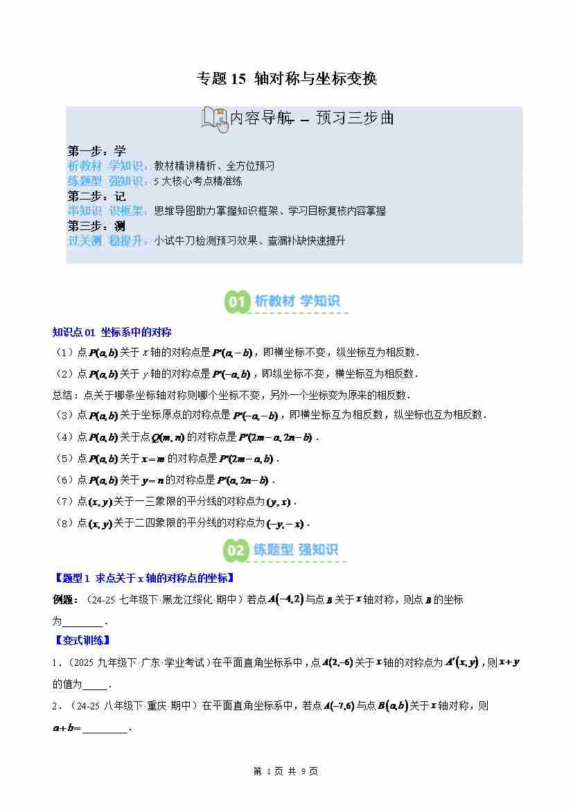 专题15: 轴对称与坐标变换(3知识点5大题型思维导图过关测)(原卷版)