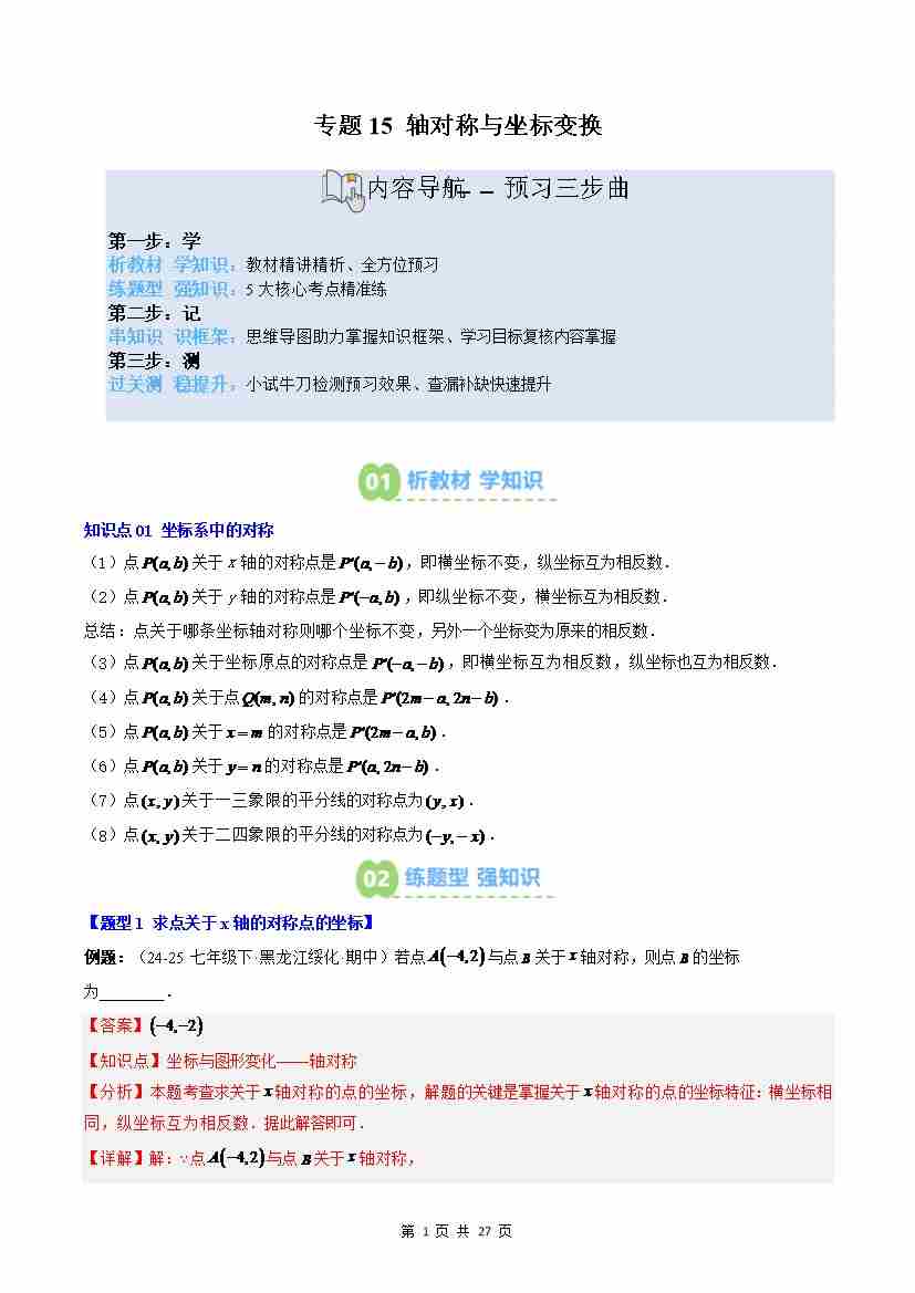 专题15: 轴对称与坐标变换(3知识点5大题型思维导图过关测)(解析版)