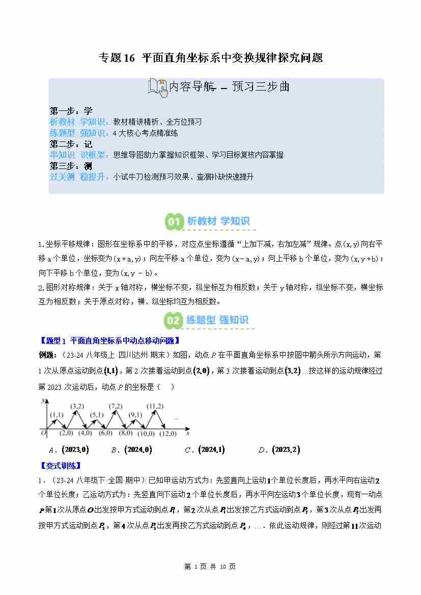 专题16: 平面直角坐标系中变换规律探究问题(2知识点4大题型思维导图过关测)(原卷版)