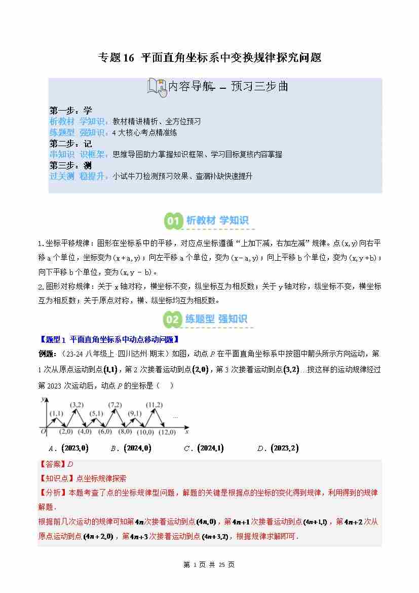 专题16: 平面直角坐标系中变换规律探究问题(2知识点4大题型思维导图过关测)(解析版)