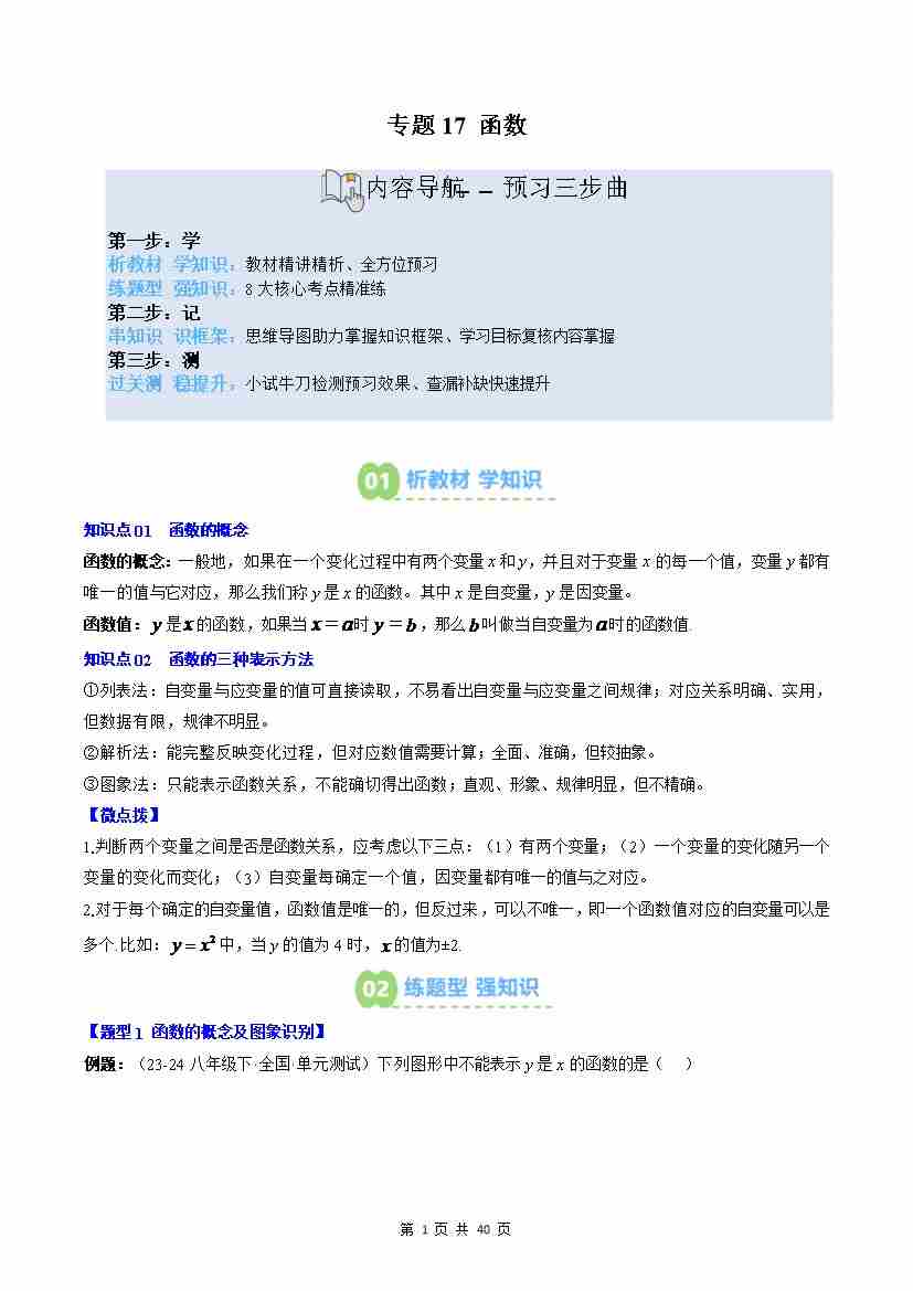 专题17: 函数(2知识点8大题型思维导图过关测)(原卷版)