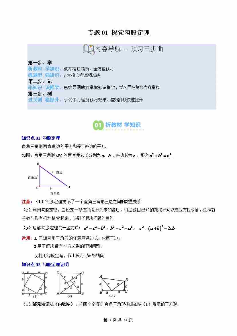 专题01: 探索勾股定理(2知识点8大题型思维导图过关测)(原卷版)