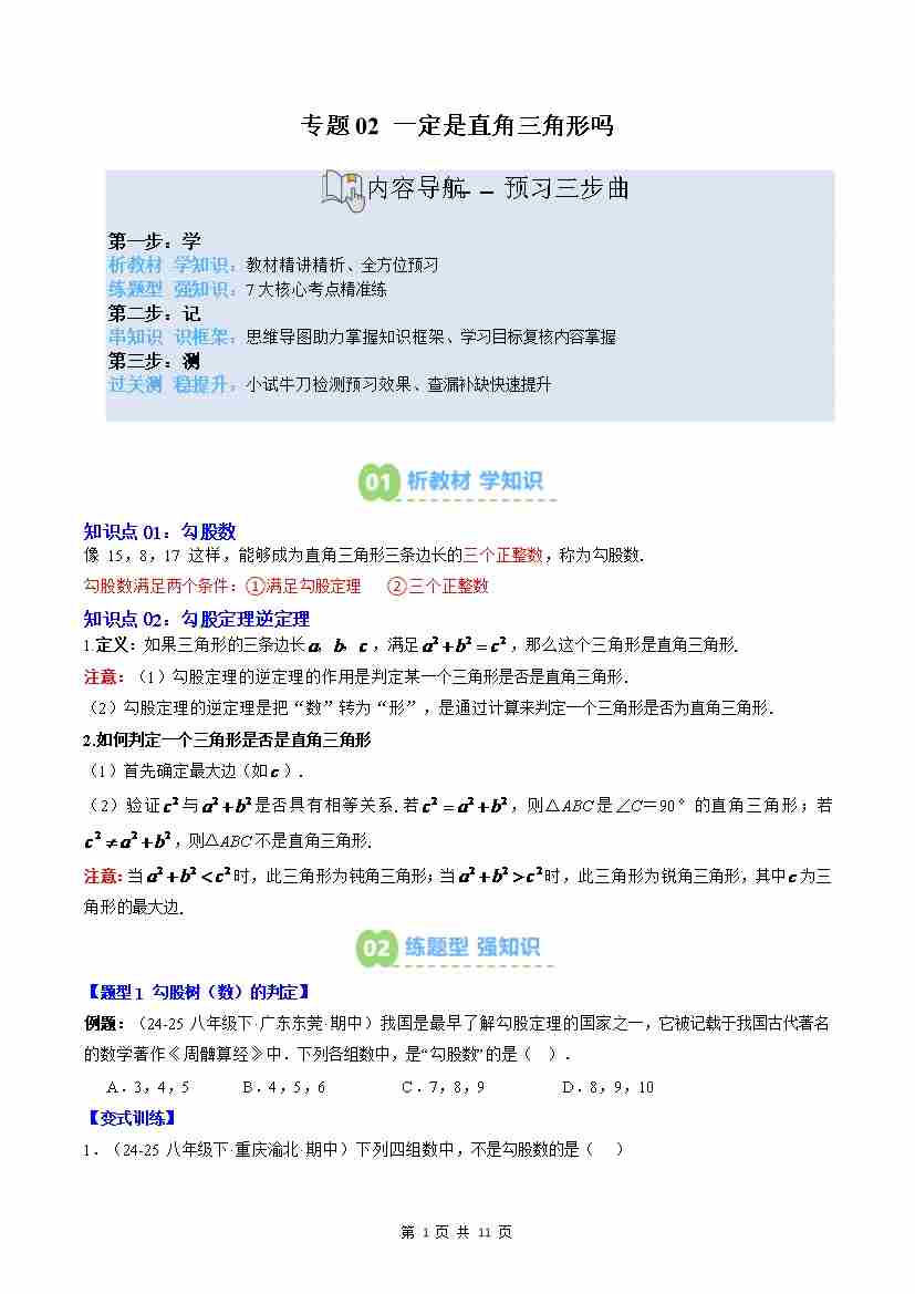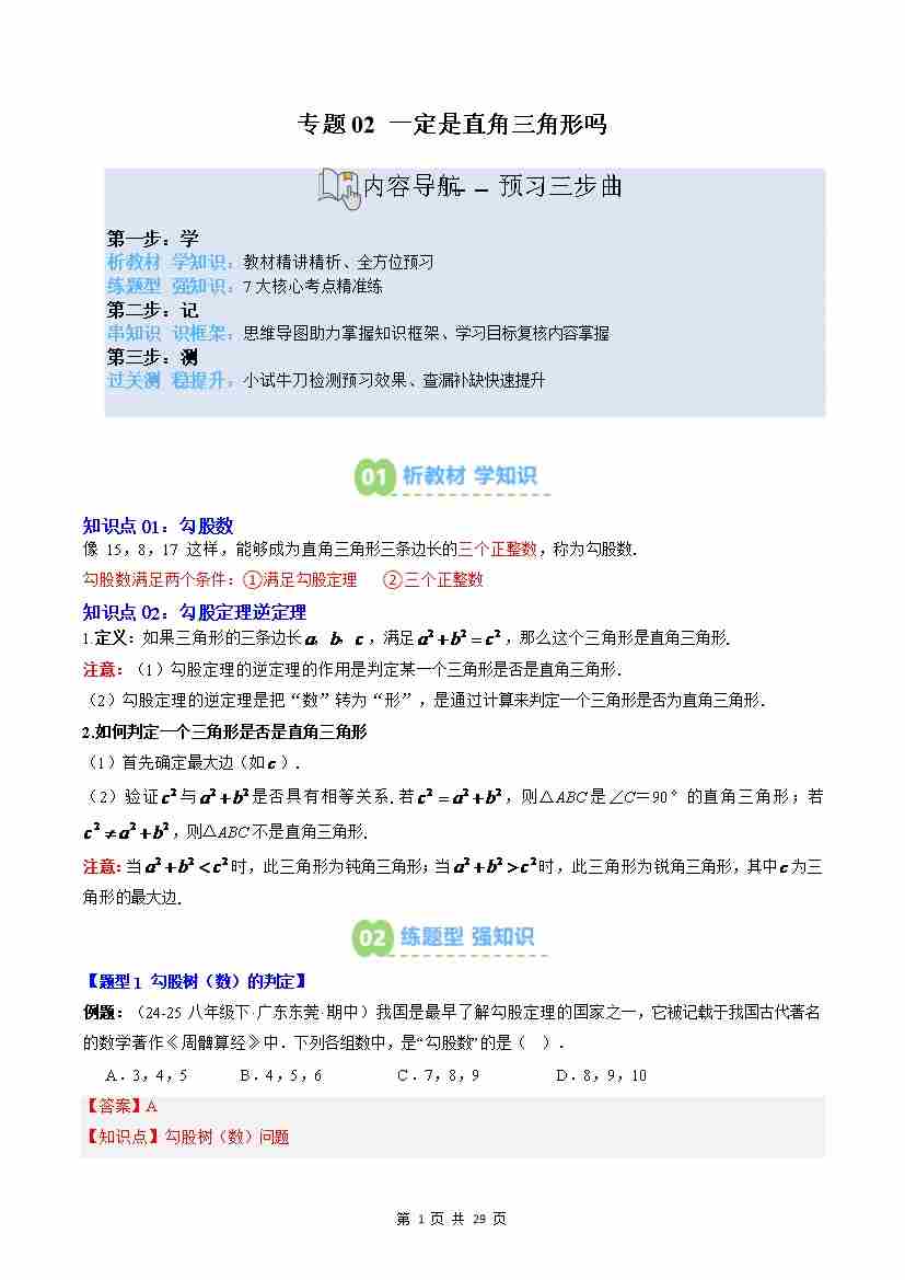 专题02: 一定是直角三角形吗(2知识点6大题型思维导图过关测)(原卷版)