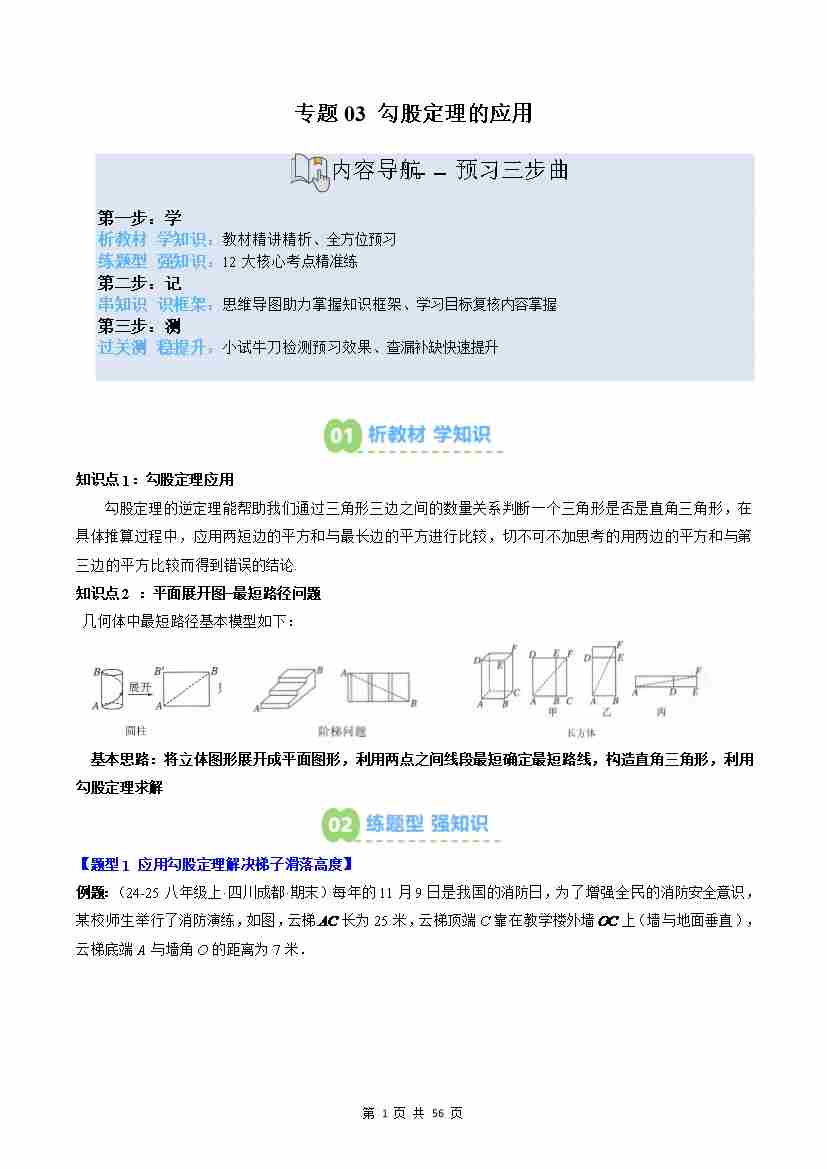 专题03: 勾股定理的应用(2知识点12大题型思维导图过关测)(解析版)