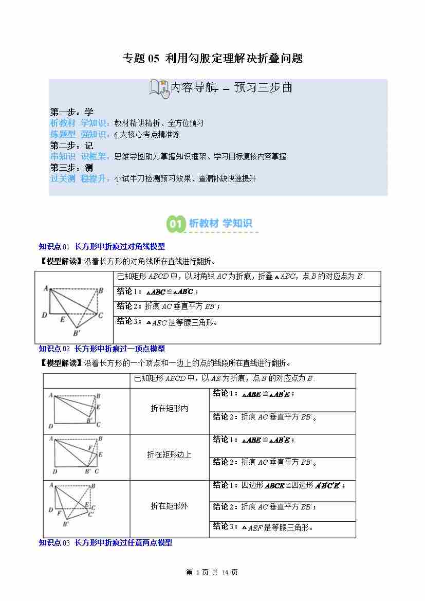 专题05: 利用勾股定理解决折叠问题(6知识点6大题型思维导图过关测)(原卷版)