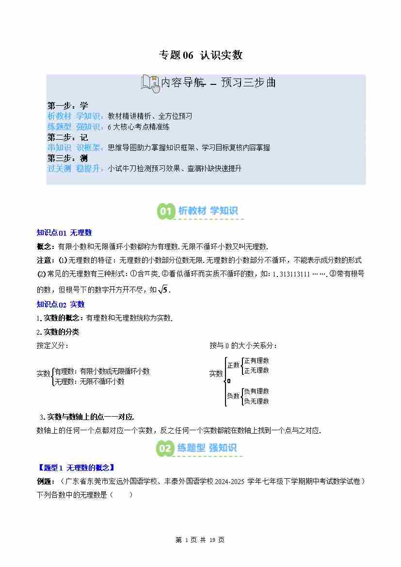 专题06: 认识实数(2知识点+6大题型思维导图过关测)(原卷版)