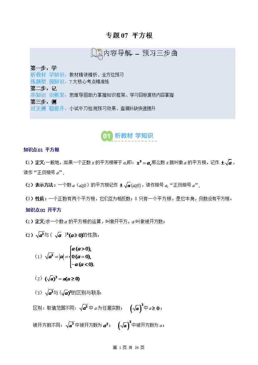 专题08: 平方根(2知识点7大题型思维导图过关测)(解析版)
